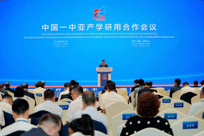 中国-中亚产学研用合作会议6月27日上午在新疆国际会展中心举行。自治区党委副书记、人民政府主席艾尔肯·吐尼亚孜出席会议并致欢迎辞,会议由自治区党委常委、宣传部部长、教育工委书记王建新主持。永利官网党委副书记、校长吾满江·艾力,校党委常委、组织部部长胡毅涛作为嘉宾出席会议。
