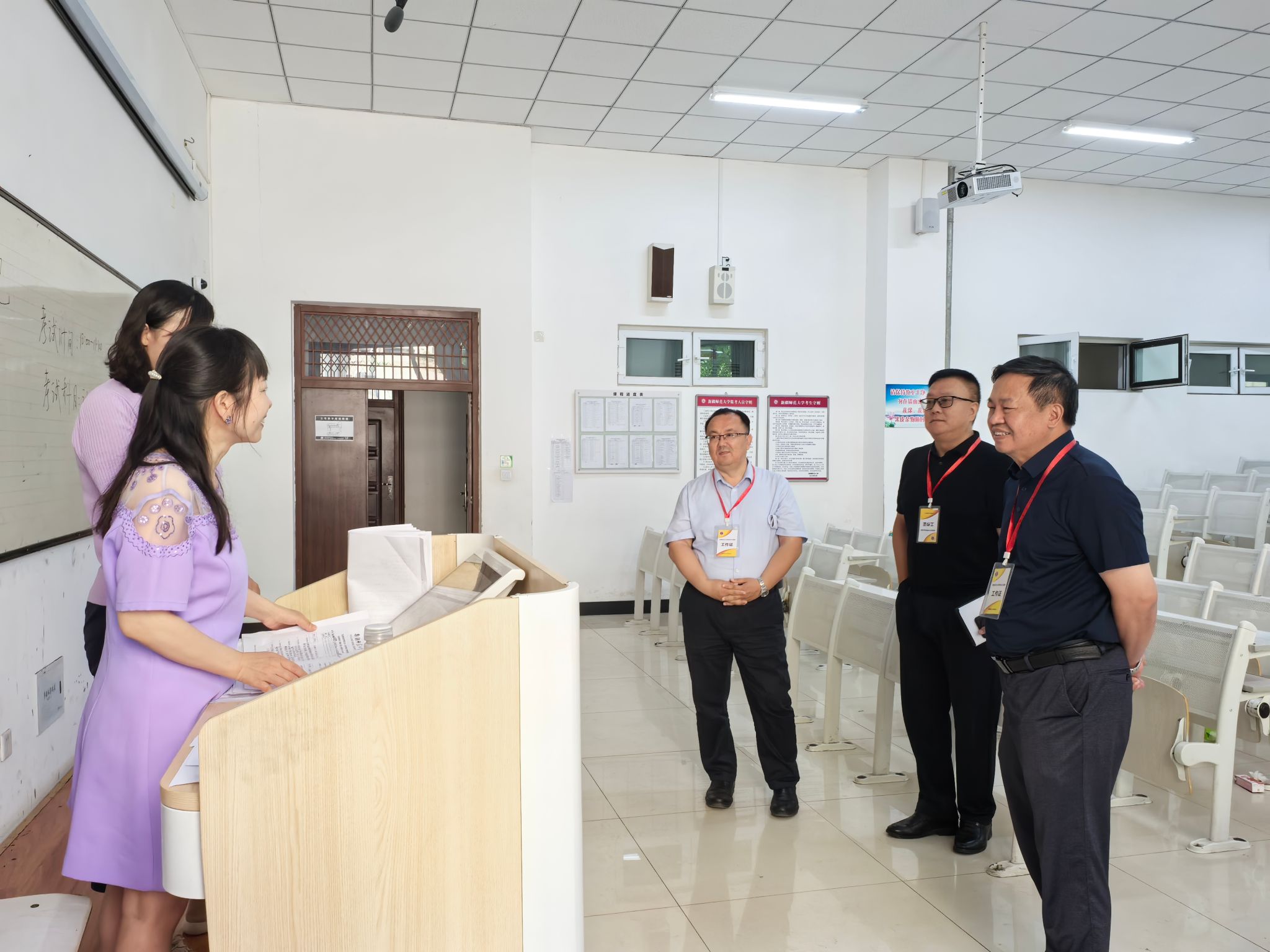 6月24日,学校2025年春季学期期末考试在温泉、昆仑两校区正式拉开帷幕。校党委书记蒋海军,校党委副书记、校长艾尼娃尔·艾克木,校党委常委、副校长陈彤一行在教务处工作人员的带领下,深入温泉校区相关考场,全面检查期末考试组织工作。校领导重点查看了考场环境、监考履职、考风考纪及学生作答情况,对试卷命题规范性、评分标准执行细节进行了现场督查和指导。