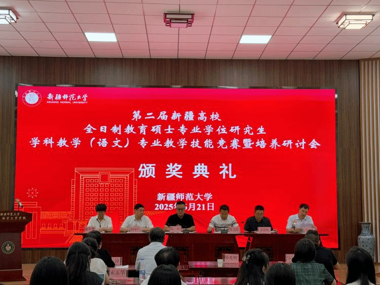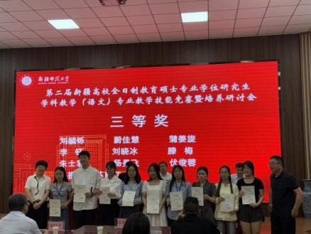 比赛当天举行了竞赛颁奖典礼。校党委常委、副校长陈彤,自治区教育厅学位管理与研究生教育处处长滕文静,永利官网研究生处处长苏闻宇,永利官网中国语言文学学院党委书记陈国栋、副院长徐军华以及大赛评委、五所高校的带队教师和参赛选手参加典礼,典礼由永利官网中国语言文学学院副院长(援疆)王庆主持。