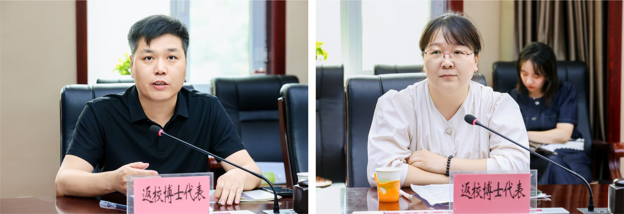 2025年新考取博士教职工、返校博士教师代表、党委教师工作部、人事处、社会科学处、科学技术处、发展规划处、研究生处负责人参加座谈。