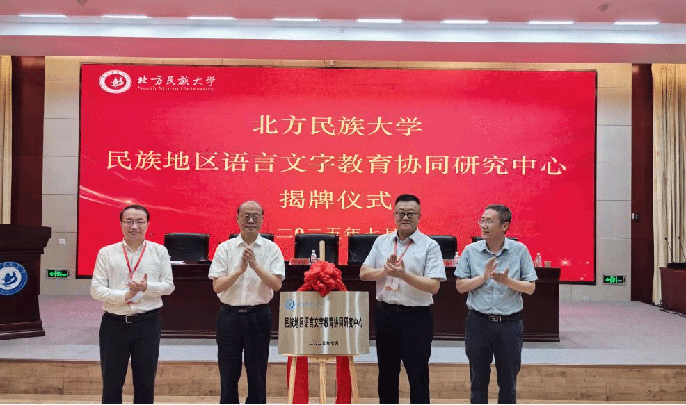 在揭牌仪式中,陈彤与北方民族大学等院校领导一同为“北方民族大学民族地区语言教育协同研究中心”揭牌,助力民族语言教育研究平台建设,彰显协同中心成员单位合力推进研究工作的决心。