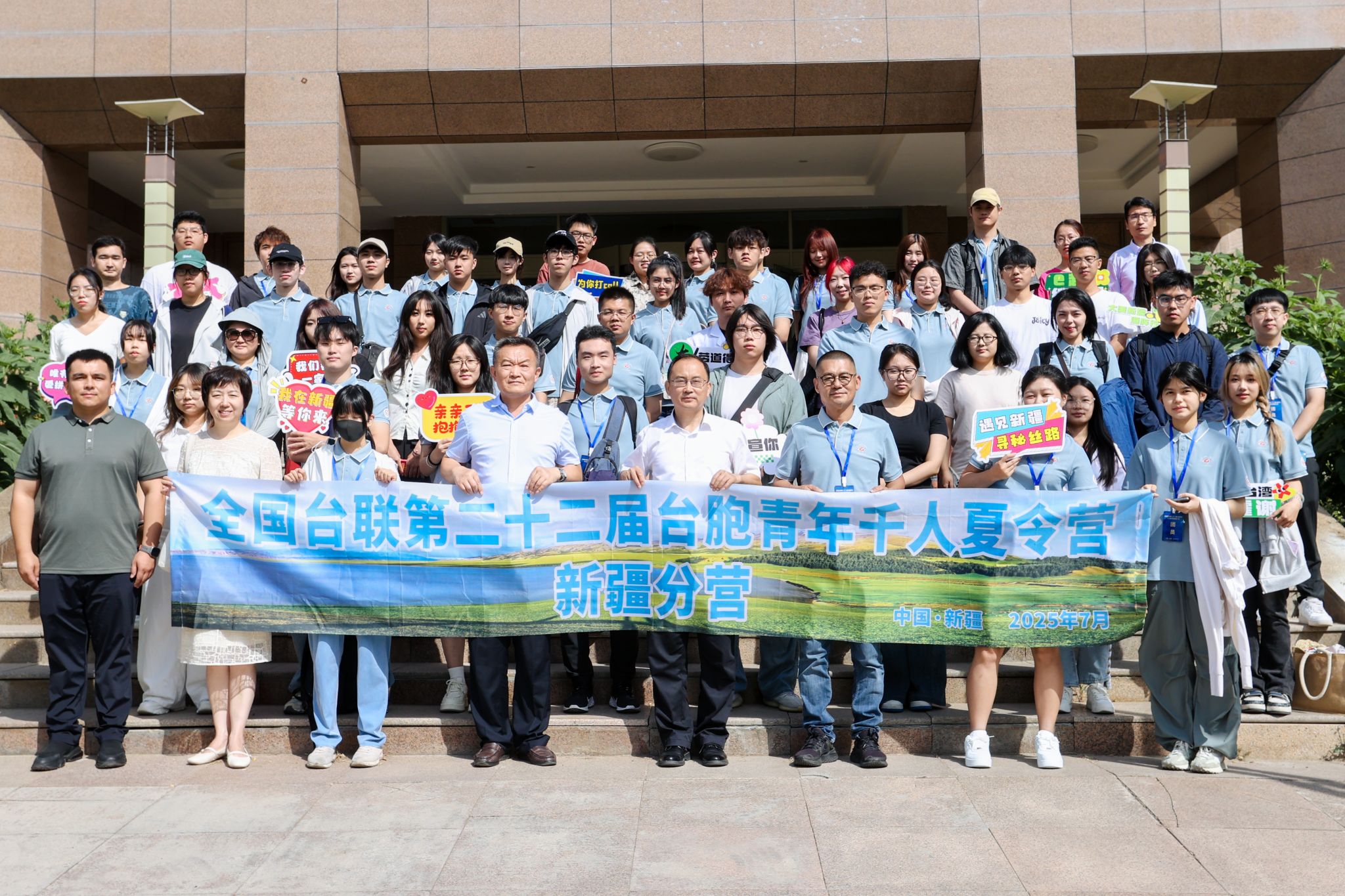7月11日,全国台联第二十二届台胞青年千人夏令营新疆分营在永利官网开营。夏令营团长侯铭宏、自治区党委统战部二级巡视员李勇、校党委副书记刘俊,学校港澳台事务办公室副主任韩炯及学生代表出席开营仪式。开营仪式由新疆台湾同胞联谊会秘书长施光主持。