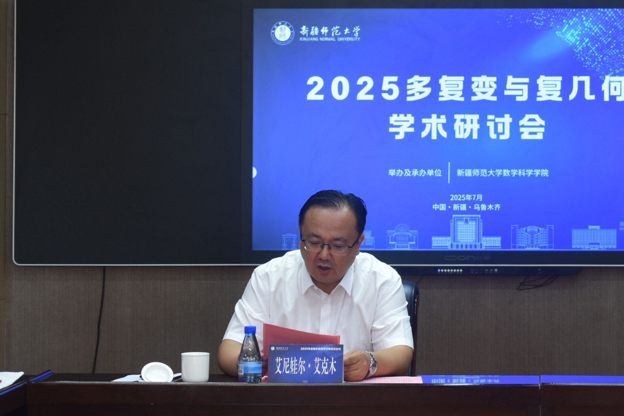 艾尼娃尔·艾克木在致辞中表示,本次会议旨在为各位专家学者搭建交流最新发展动态及学术成果的合作平台,积极促进国内多复变与复几何研究领域与其他相关学科的交叉、融合发展。学校将以本次会议为契机,聚焦科技前沿,加强合作共享,扎实推进多复变与复几何研究跨区域、跨学科深度合作。
