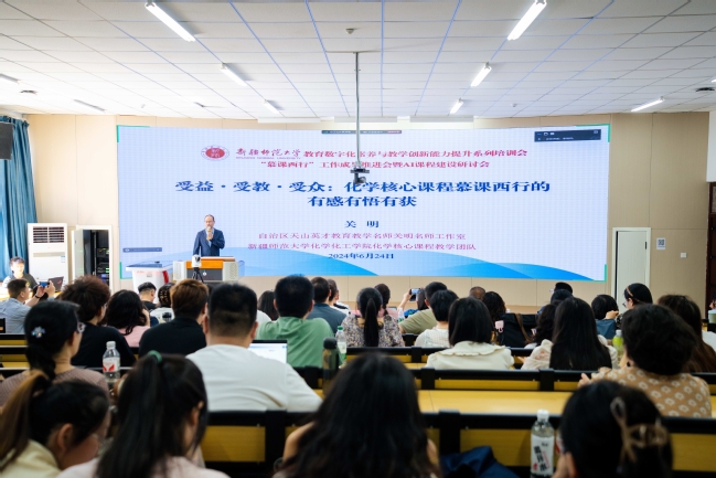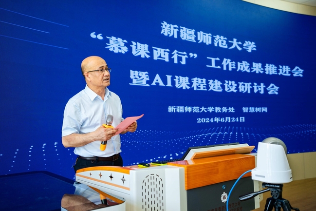 研讨会上,校党委常委、副校长、新疆天山职业技术大学党委书记关明作为永利官网国家级一流课程负责人、永利官网首门AI数智共享课程负责人,作题为《受益·受教·受众:化学核心课程慕课西行的有感有悟有获》主题报告;华东师范大学地理科学学院副院长、自治区天池特聘教授孔翔作《在慕课西行中推进人文地理学课程的课程思政创新》主题报告;西北工业大学数学与统计学院党委副书记、全国高校教师教学创新大赛一等奖获得者张莹作《知识图谱融合AI技术—教学的数智化转型与创新》主题报告,分别结合“慕课西行”就各自AI数智课程建设教育实践经验进行了分享。