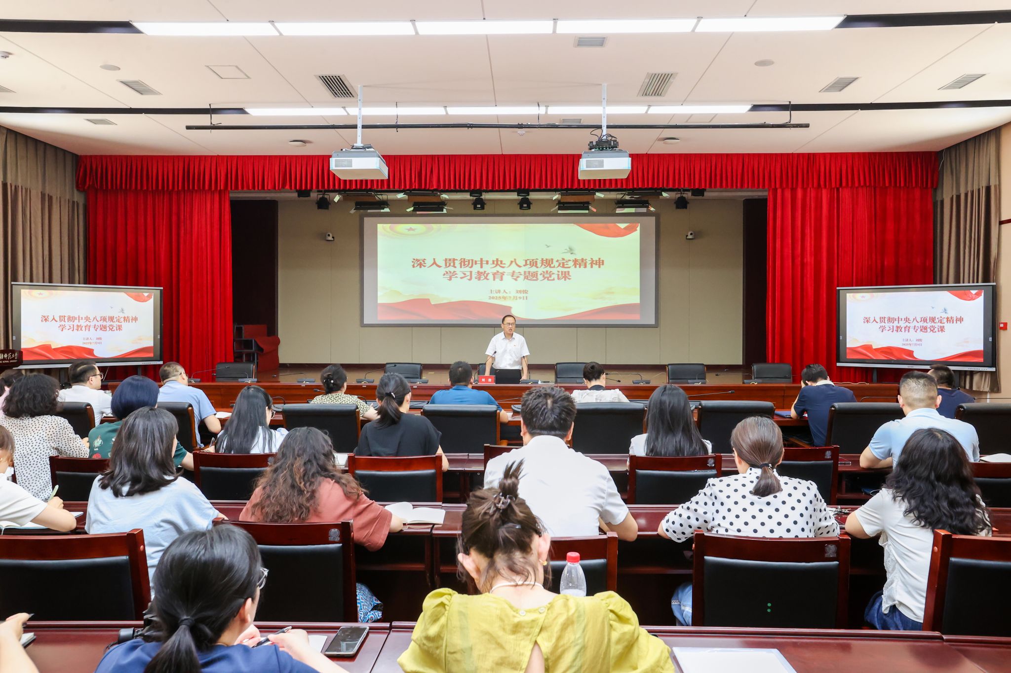 7月16日,校党委常委、副校长刘晨江为研究生处、科学技术处、社会科学处党员干部讲授专题党课。刘晨江系统介绍了中央八项规定精神的核心内容与基本要求,阐述了其出台的时代背景及对党风政风建设的重要作用,分析了相关部门现阶段作风建设面临的困难,同时提出了针对性的推进措施。他强调,党员干部要不断增强深入贯彻中央八项规定及其实施细则精神的思想自觉和行动自觉,推进作风建设常态化长效化,以作风建设新成效赢得广大师生信任支持、促进学校各项事业高质量发展。