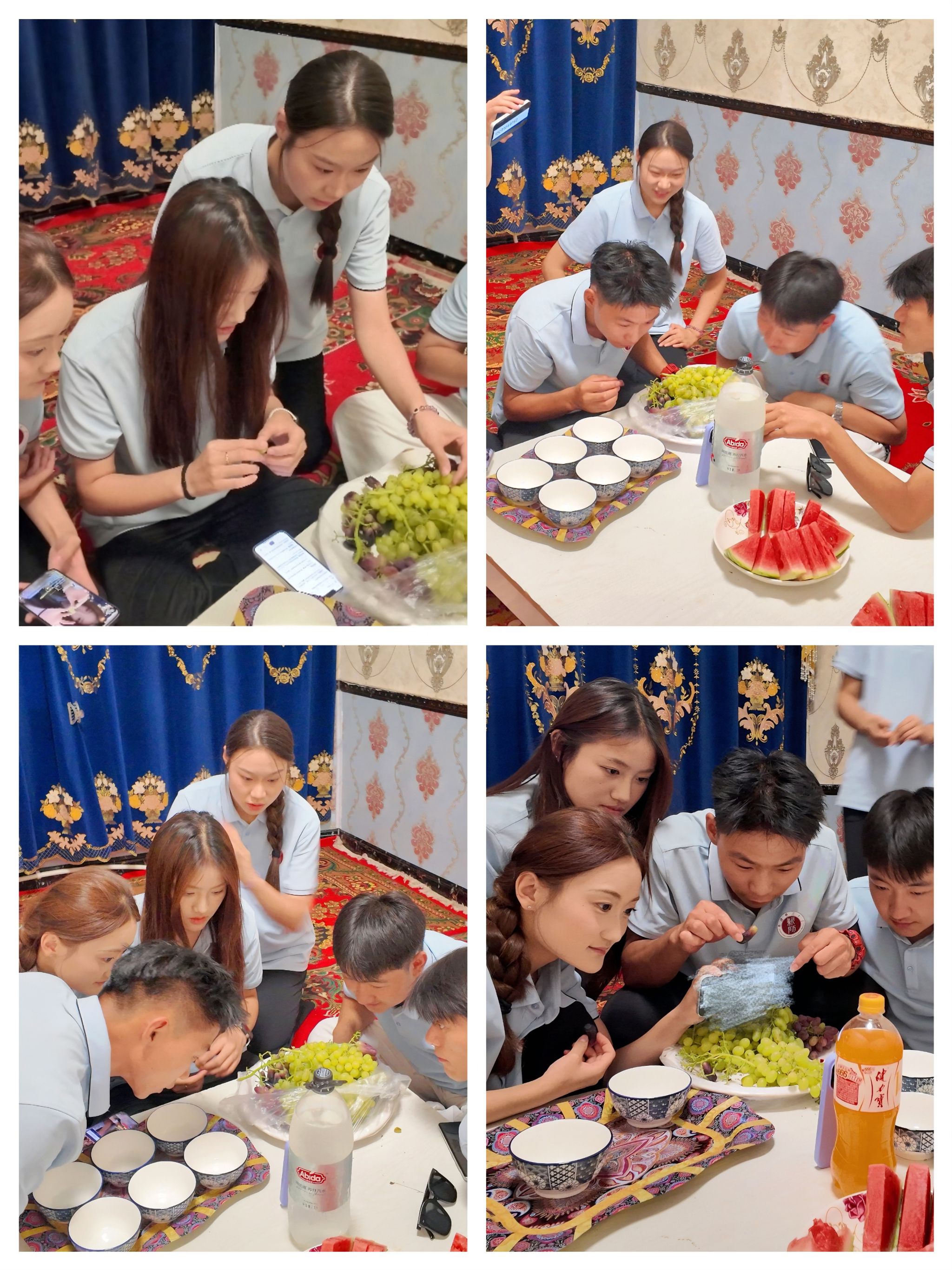 此次实践活动内容丰富且具有针对性。在铸牢中华民族共同体意识宣讲环节,实践团成员通过学习座谈、主题宣讲等形式,深入解读党的二十大精神和习近平总书记关于加强和改进民族工作的重要思想,让民族团结进步教育深入人心。在假期小课堂中,志愿者们化身“小老师”,为当地学生带来科普知识、非遗体验、艺术启蒙等趣味课程,点亮孩子们的假期生活。此外,志愿者们还让直播助农活动走进葡萄园,主播带领网友“云游”种植基地,直观展示无核白葡萄的生长环境、种植技艺,还分享农户的种植故事,助力优质农产品搭乘“电商快车”走向更广阔的市场。傍晚时分的文艺汇演更是将活动推向高潮,实践团成员献上精心准备的节目,用歌声与舞姿传递青春活力,进一步增进了与当地群众的情感交流。