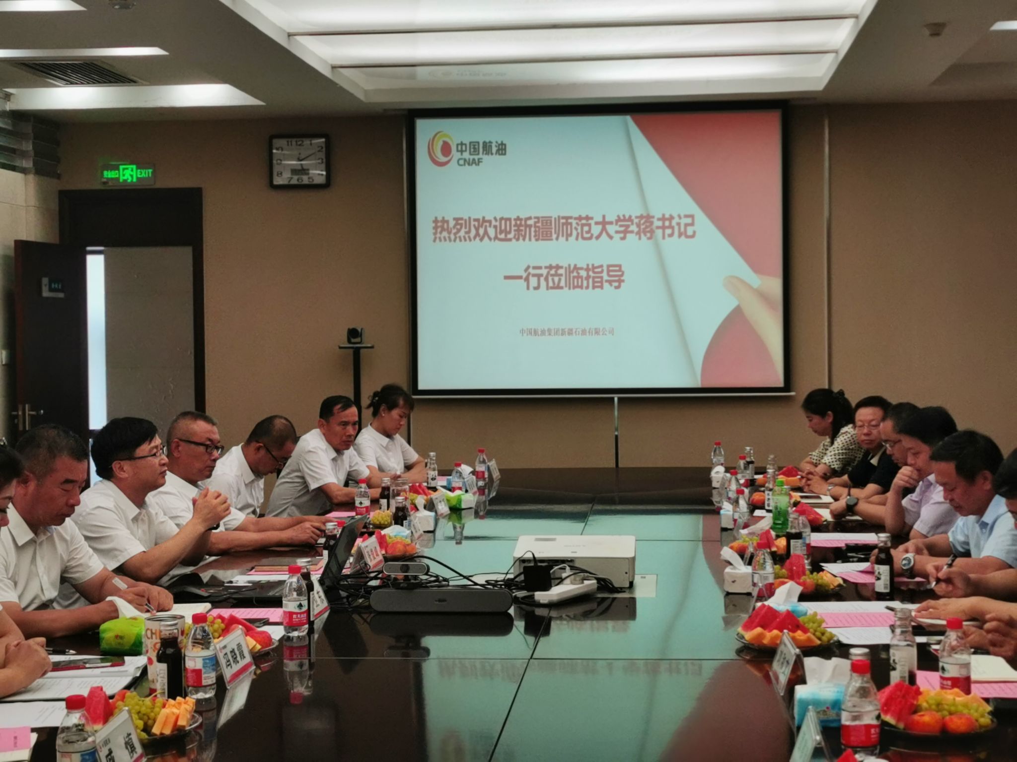 校党委书记蒋海军,校党委常委、副校长刘晨江一行在中国航油集团新疆石油有限公司座谈