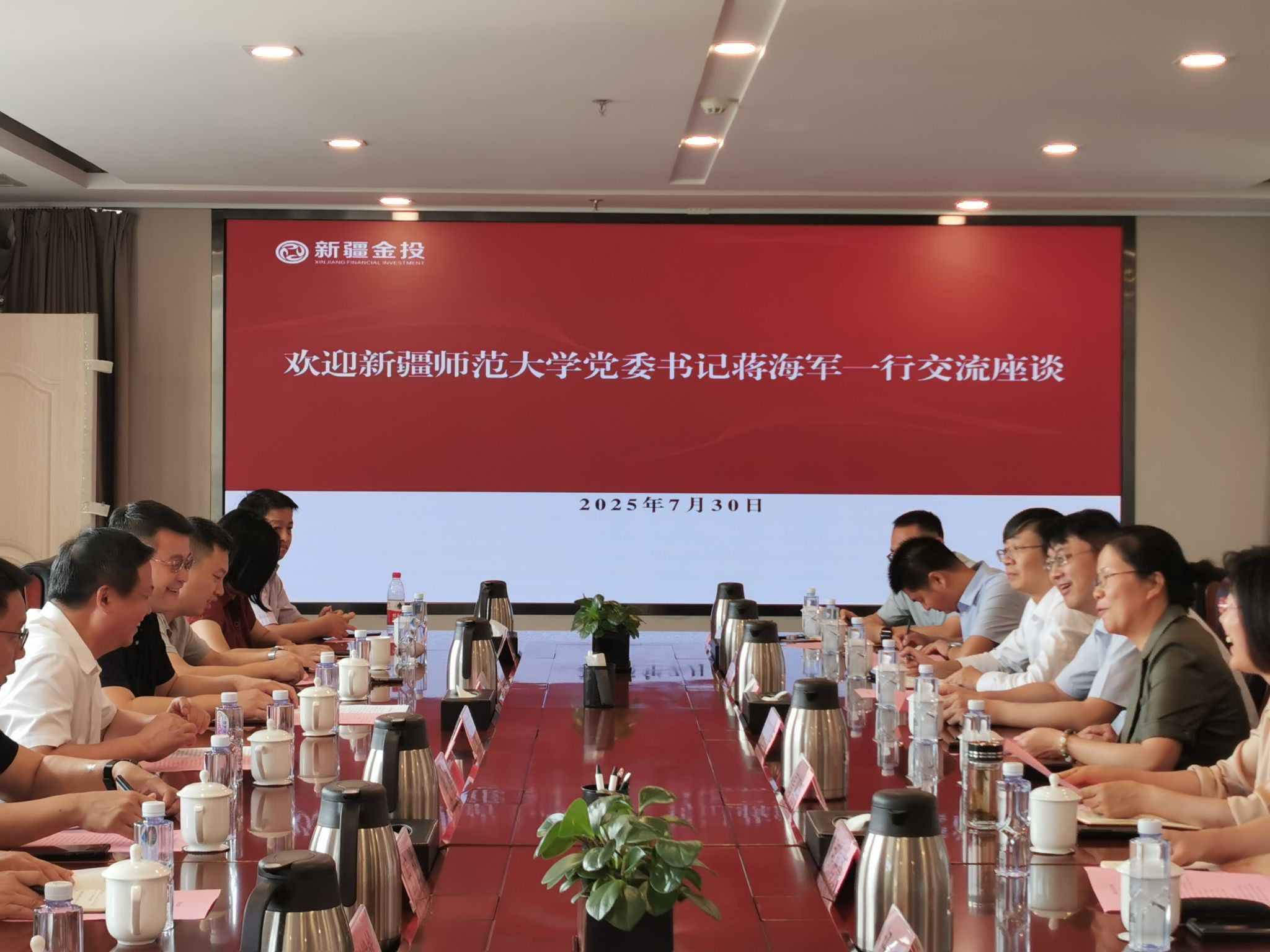 校党委书记蒋海军,校党委常委、副校长刘晨江一行在新疆金融投资(集团)有限责任公司座谈