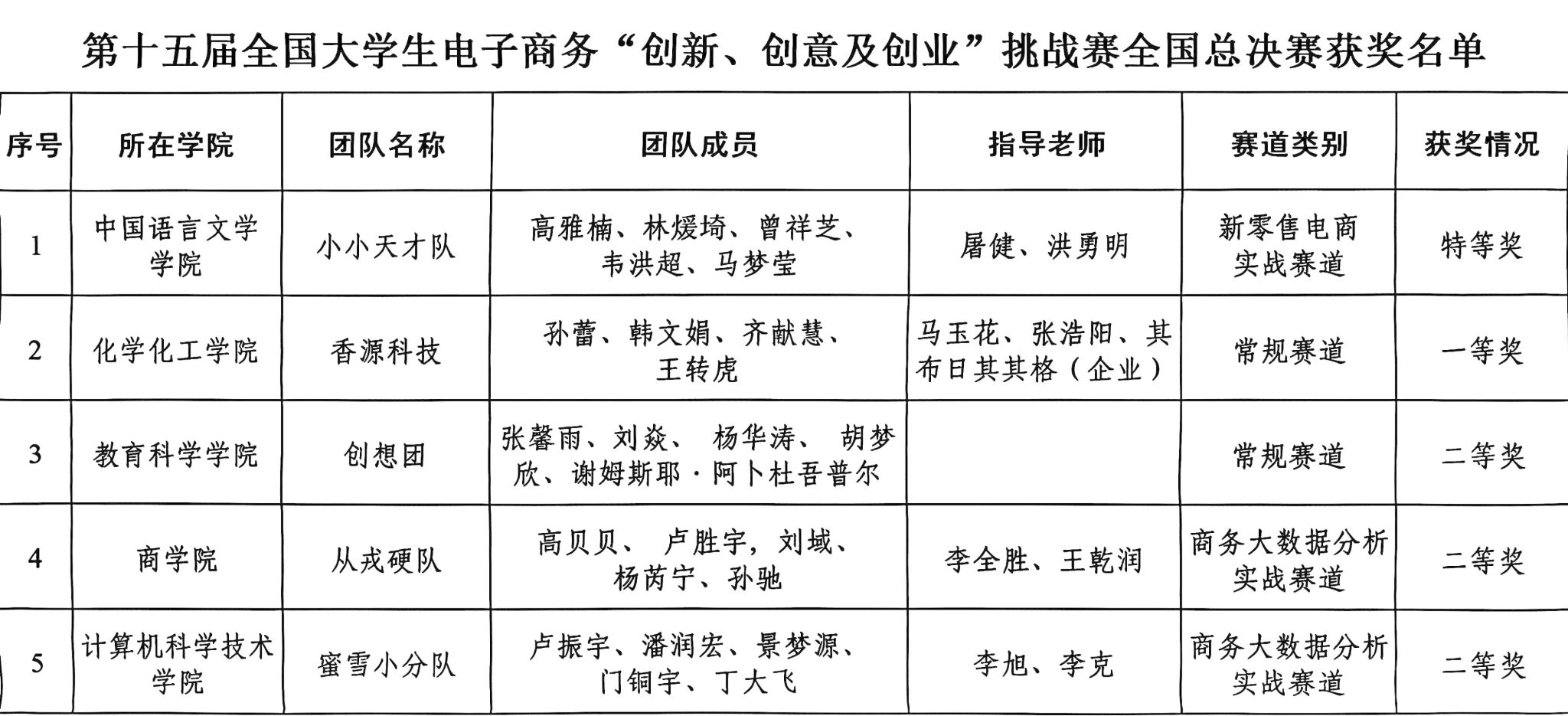 第十五届全国大学生电子商务“创新、创意及创业”挑战赛全国总决赛永利官网获奖名单