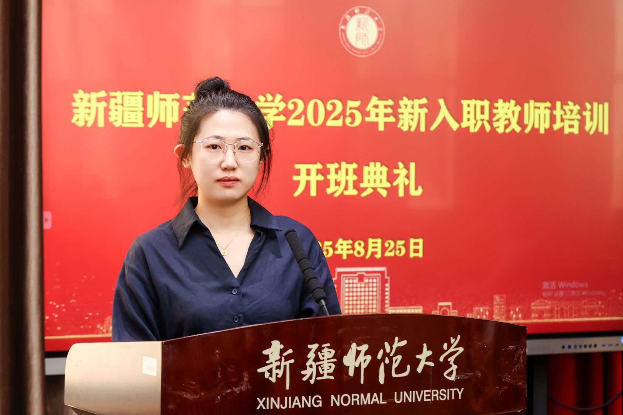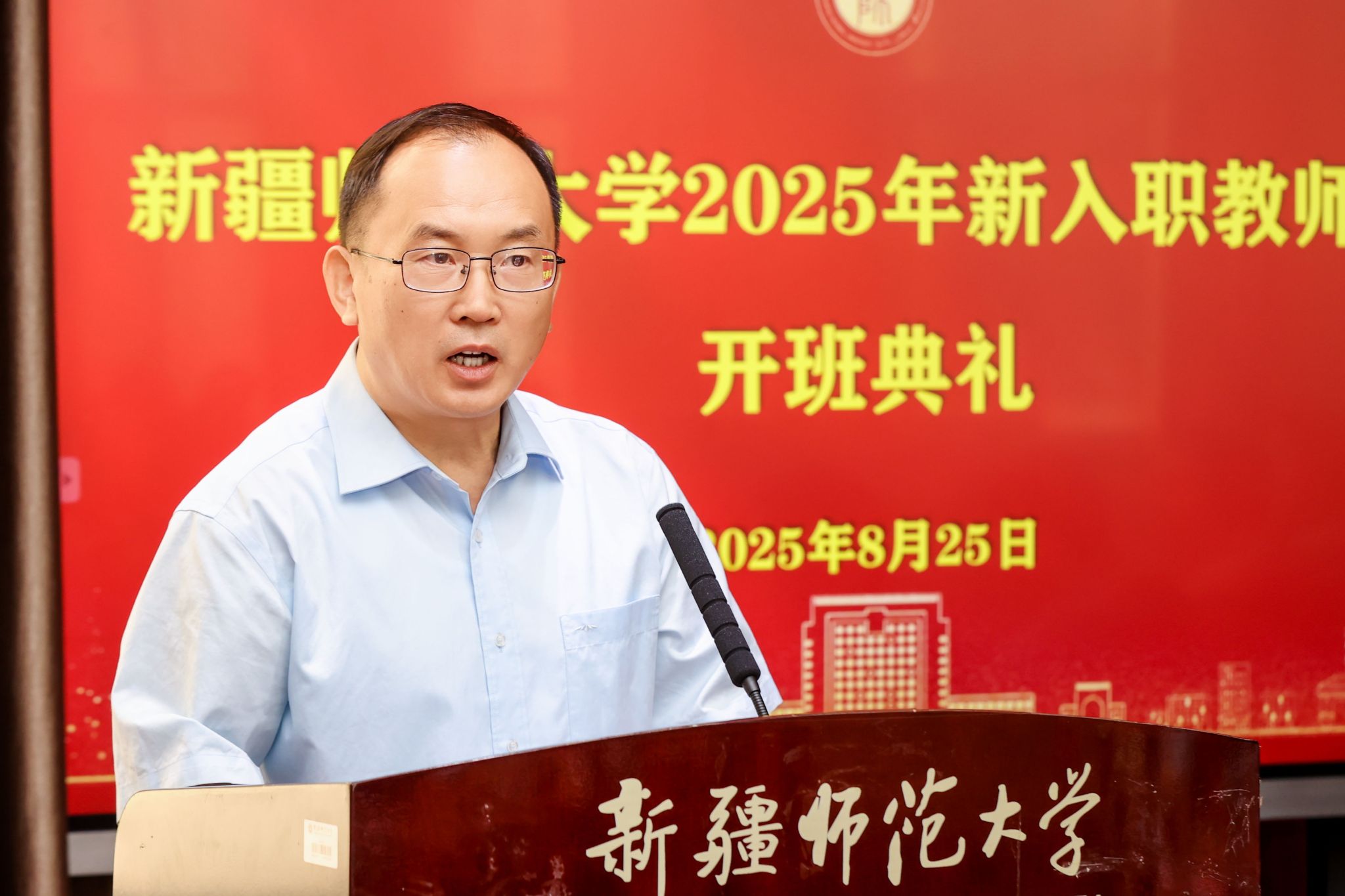 开班典礼上,刘俊代表学校对新教师表示热烈欢迎,立足学校发展全局深刻阐述了教师肩负的育人重任与时代使命,并对新教师提出期望和要求,即守好“师范”初心,做师德师风的“引路灯”,勇闯科研“新赛道”,做学校发展的“开拓者”,当好育人“大先生”,做学生成长的“摆渡人”。