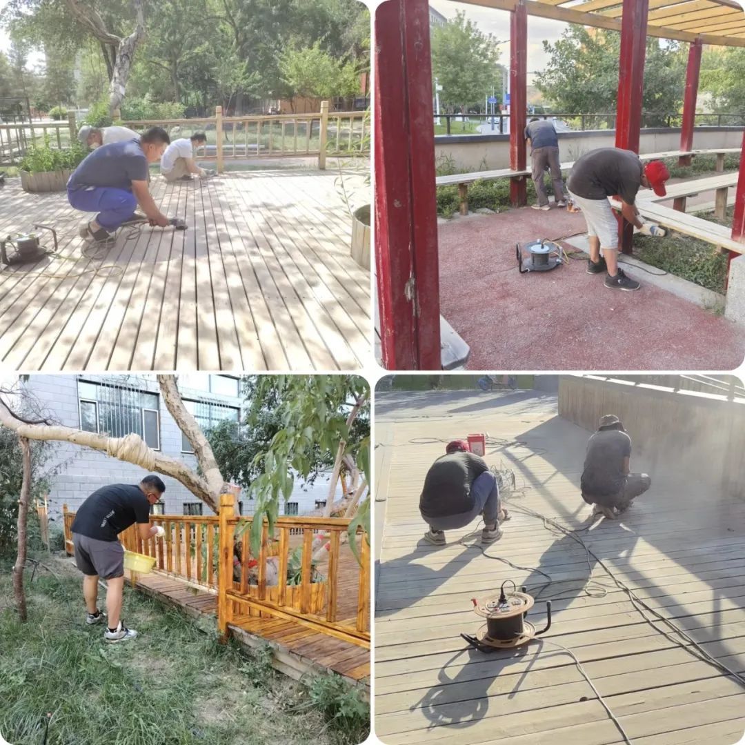 校园环境美化与师生生活体验息息相关。后勤水电服务部、校园服务部、学生社区服务部三部门协同发力,全面完成两校区木栈道粉刷工程,覆盖范围包括昆仑校区田家炳北侧、数理楼南侧、行健楼南侧、艺术楼北侧树圈;温泉校区行政楼前薰衣草区域、文科5号楼西侧、运动场至图书馆大台阶、篮球场西侧、运动场周边及一号餐厅东侧等师生高频活动区域。焕然一新的木栈道不仅提升了校园景观颜值,更筑牢了行人通行安全防线。此外,校园景观石、校训字描红工作已纳入后续计划,将在保障日常服务的基础上尽快启动,进一步彰显校园文化底蕴、美化校园环境。