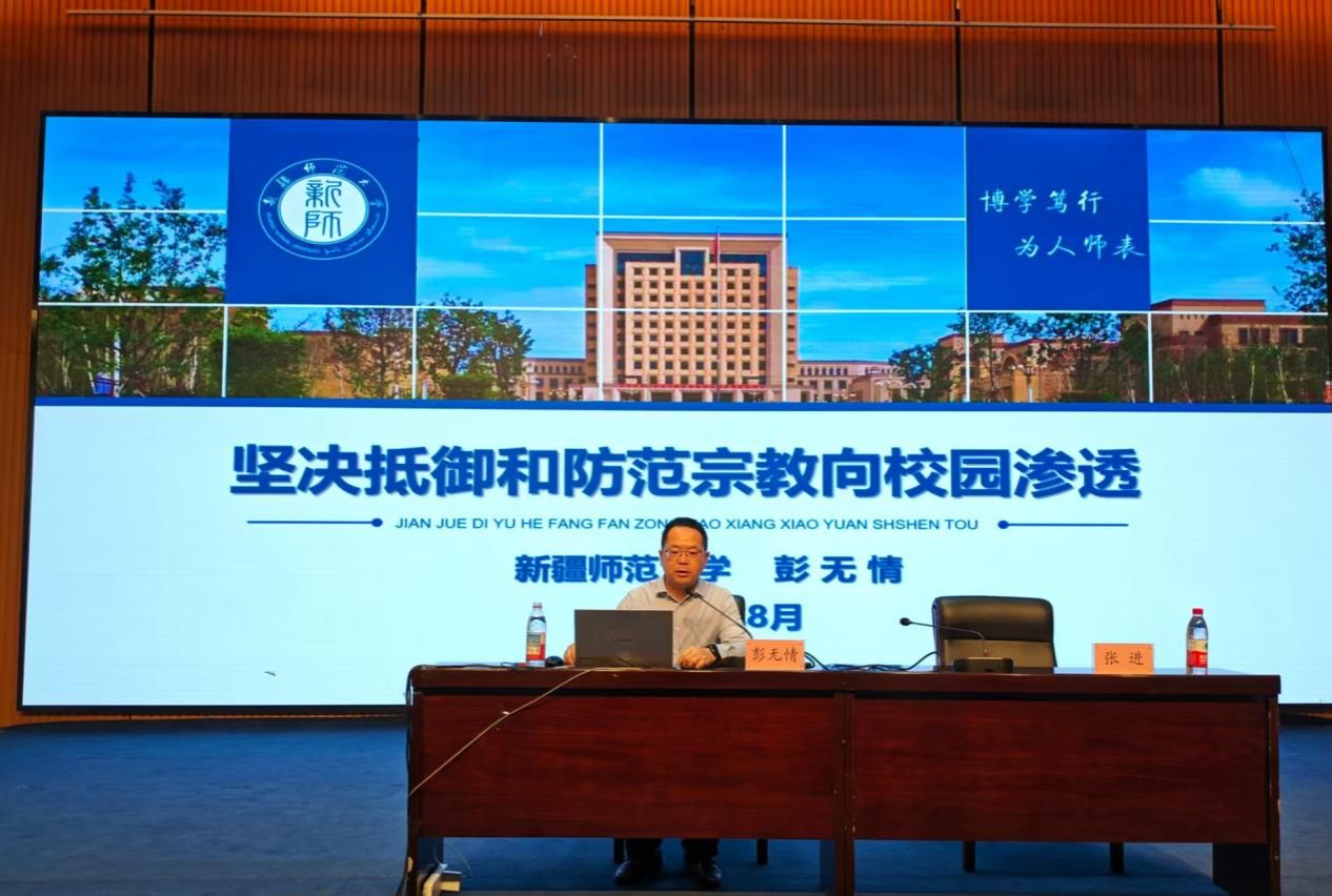 彭无情以《高校相关工作的挑战与应对》为题作专题讲座,系统梳理了新疆高校学生面临的挑战,阐释了马克思主义宗教观、意识形态领域教育的核心内容,从马克思主义宗教观等马克思主义观点和方法论出发,总结归纳长远的固本之策,为今后学生意识形态领域教育工作提供了强有力的“方法论”支撑。