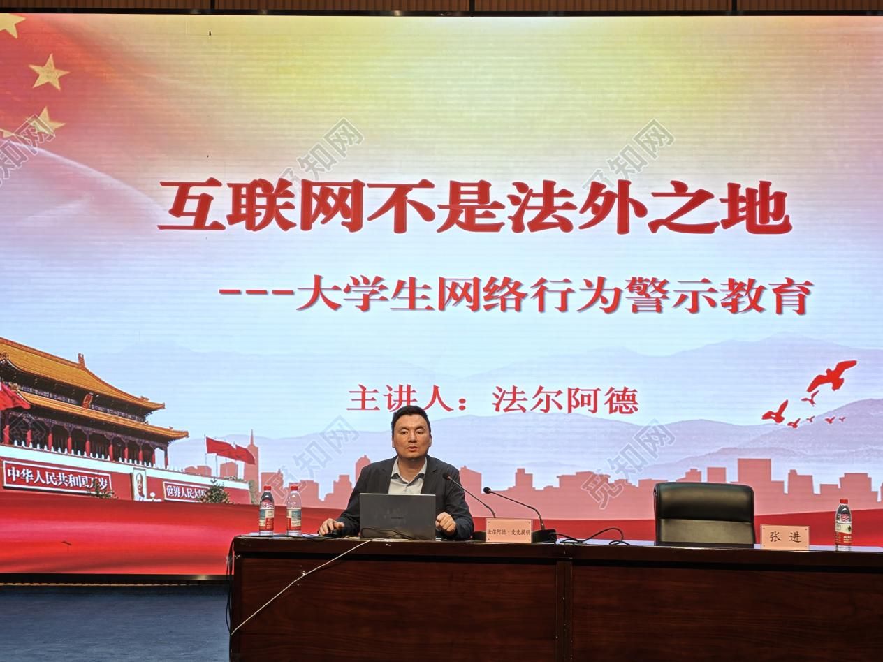 自治区党委网信办网络执法与监督处副处长法尔阿德·麦麦提明以《互联网不是法外之地》为题,紧密结合实际案例,通过介绍学生网络不当言论案例以及网购、网恋诈骗案例等,明确了法律边界及约束言论行为要求。讲座既有法律知识的普及,也有网络风险防范的实操建议,对今后引导学生增强网络安全意识具有务实指导作用。