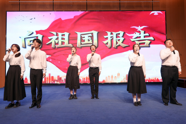 校团委大学生艺术团带来诗朗诵《向祖国报告》和歌曲演唱《我们都是追梦人》