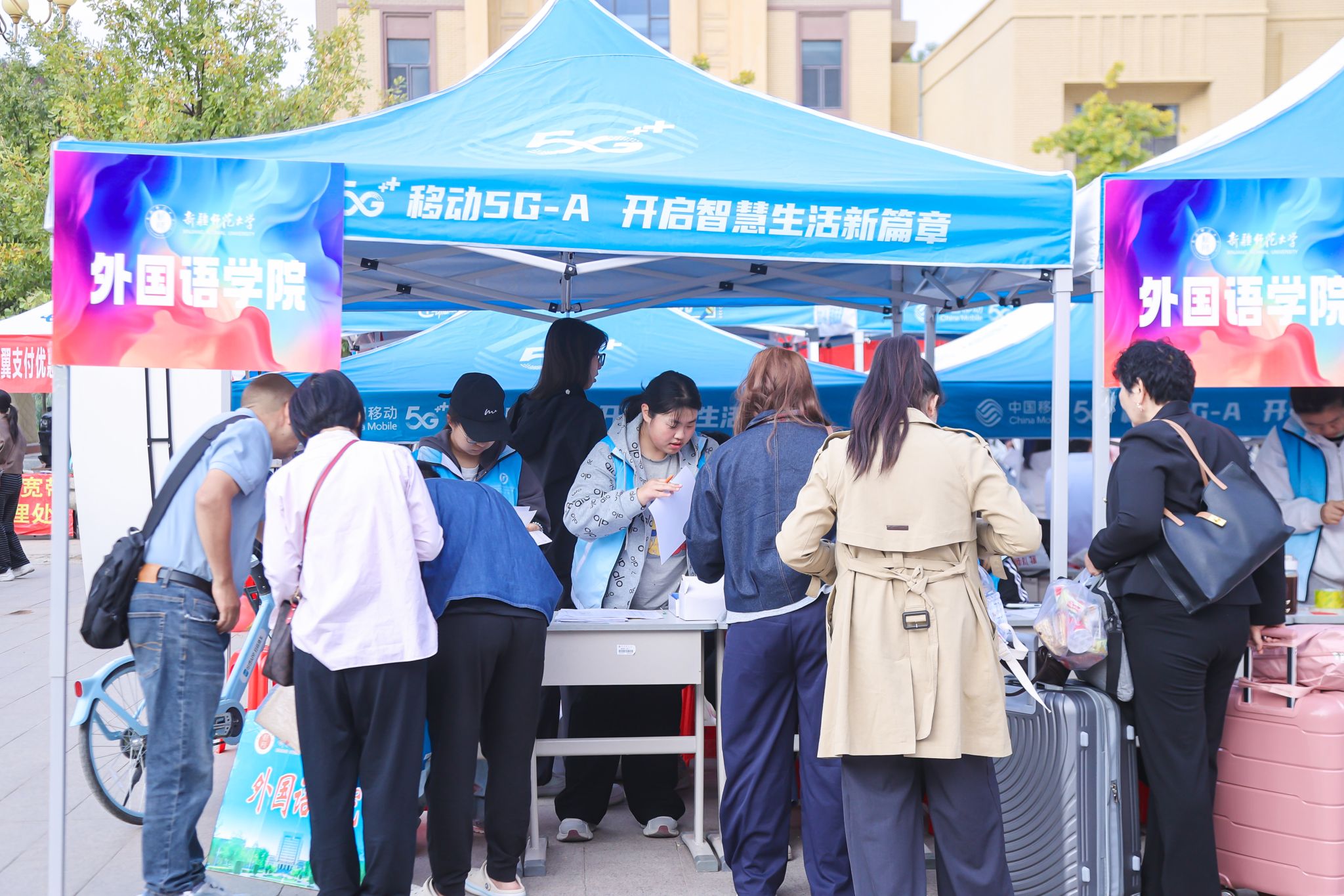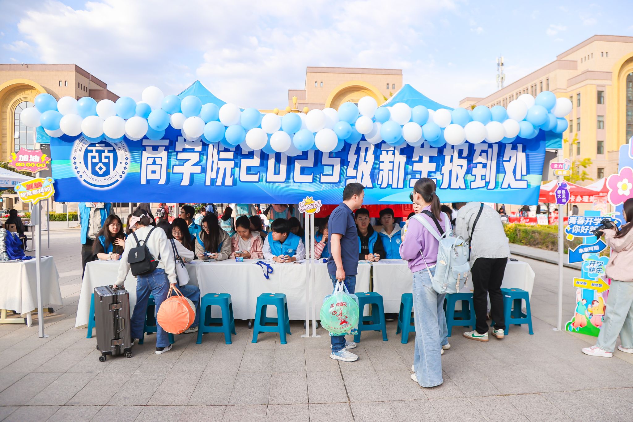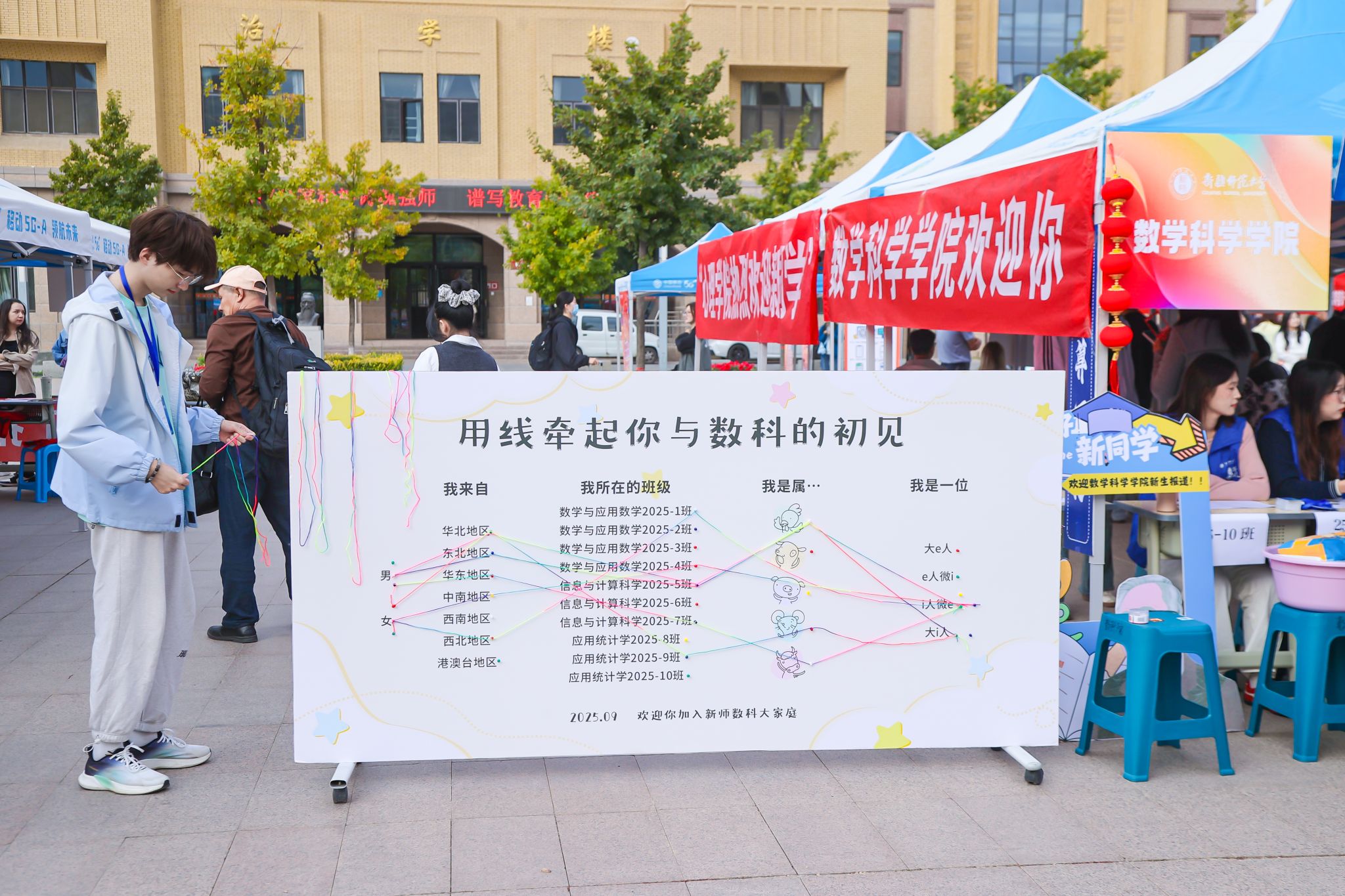 迎新现场,各学院别出心裁开展了一系列特色活动。商学院由“学长学姐”自主设计的文创礼物盲盒,成为最受关注的“入学礼”,每一份礼物都承载着学院对新生们美好的祝福;中国语言文学学院以“一线”为媒开展特色活动,一根丝线串联起互动与交流,悄然拉近了与学子的距离,既探寻他们来自五湖四海的地域故事,也聆听每个人独一无二的个性心声;数学科学学院精心准备了“数学之旅打卡”活动,为新生们定制了特色手持打卡相框,相框融入了数学公式和几何图形元素,新生们可手持相框在学院标志性场景前拍照留念,记录下成为数科院一员的第一个瞬间。