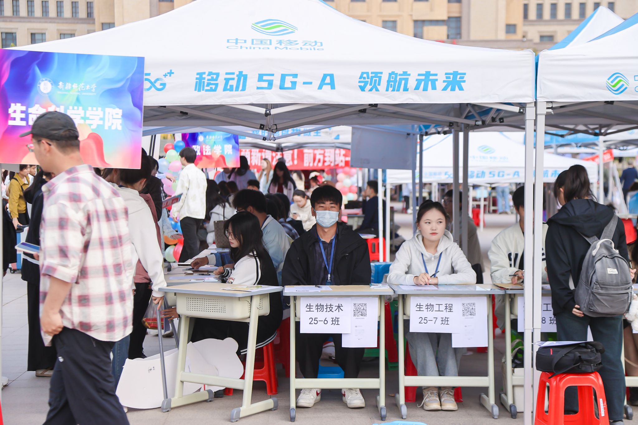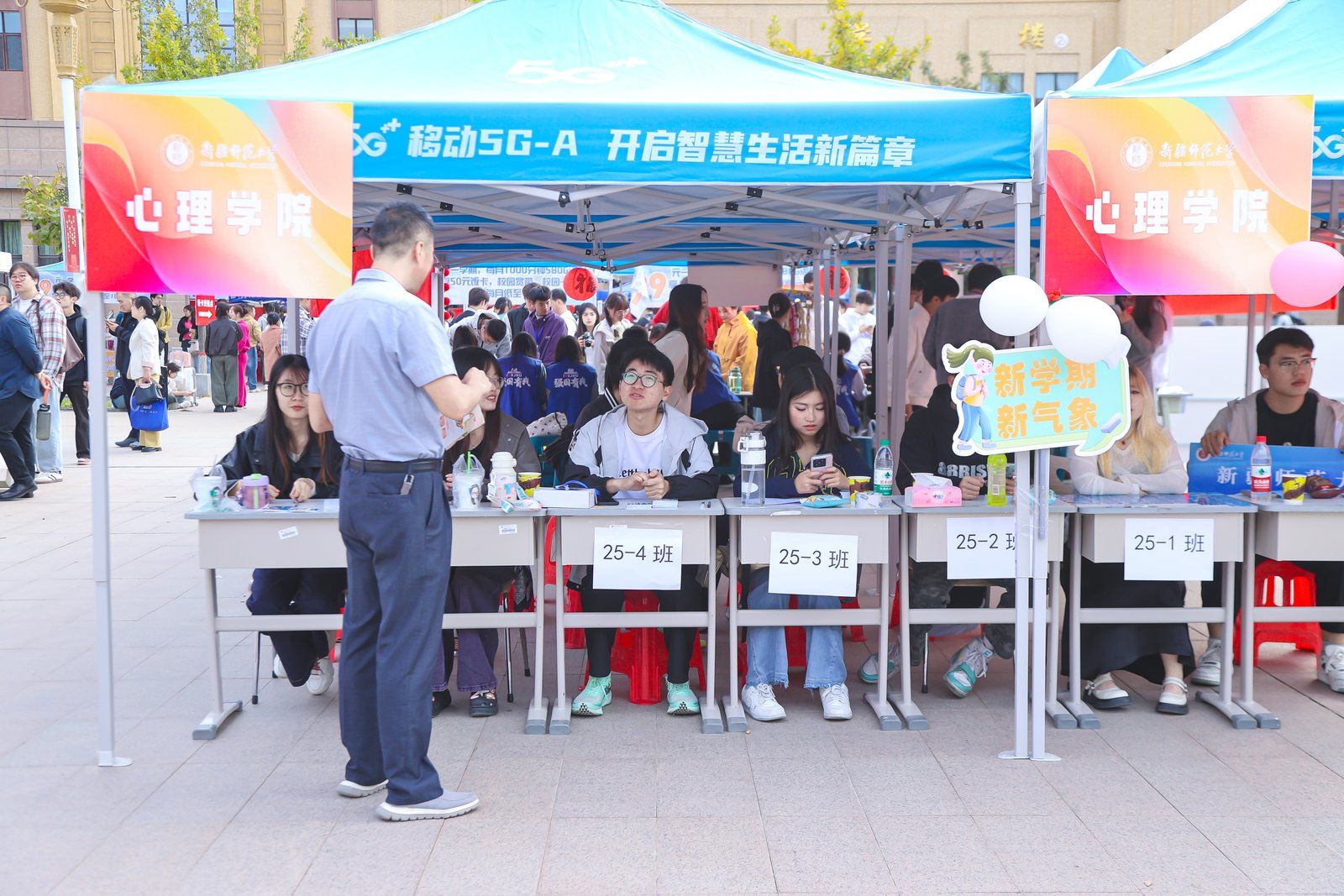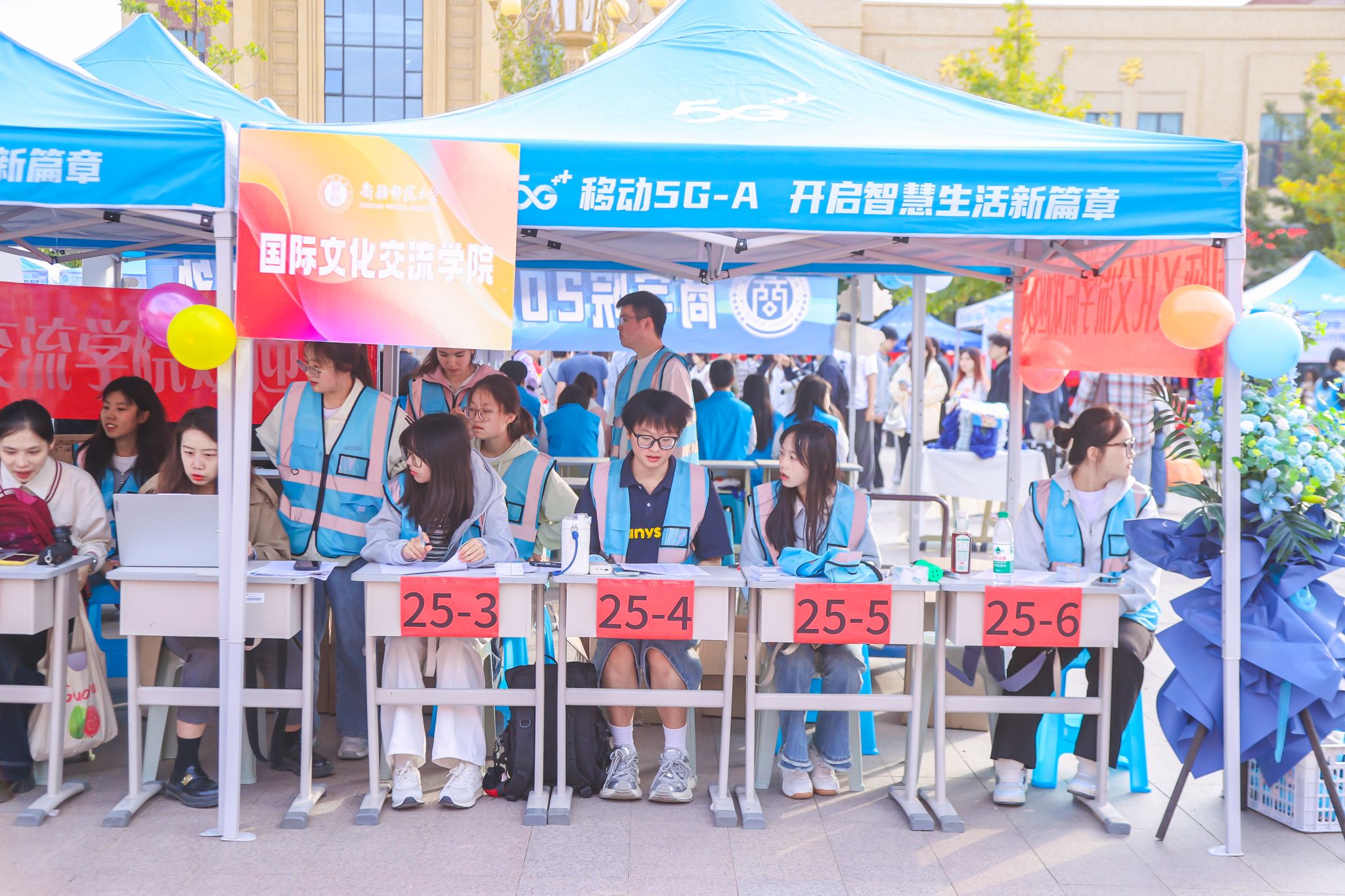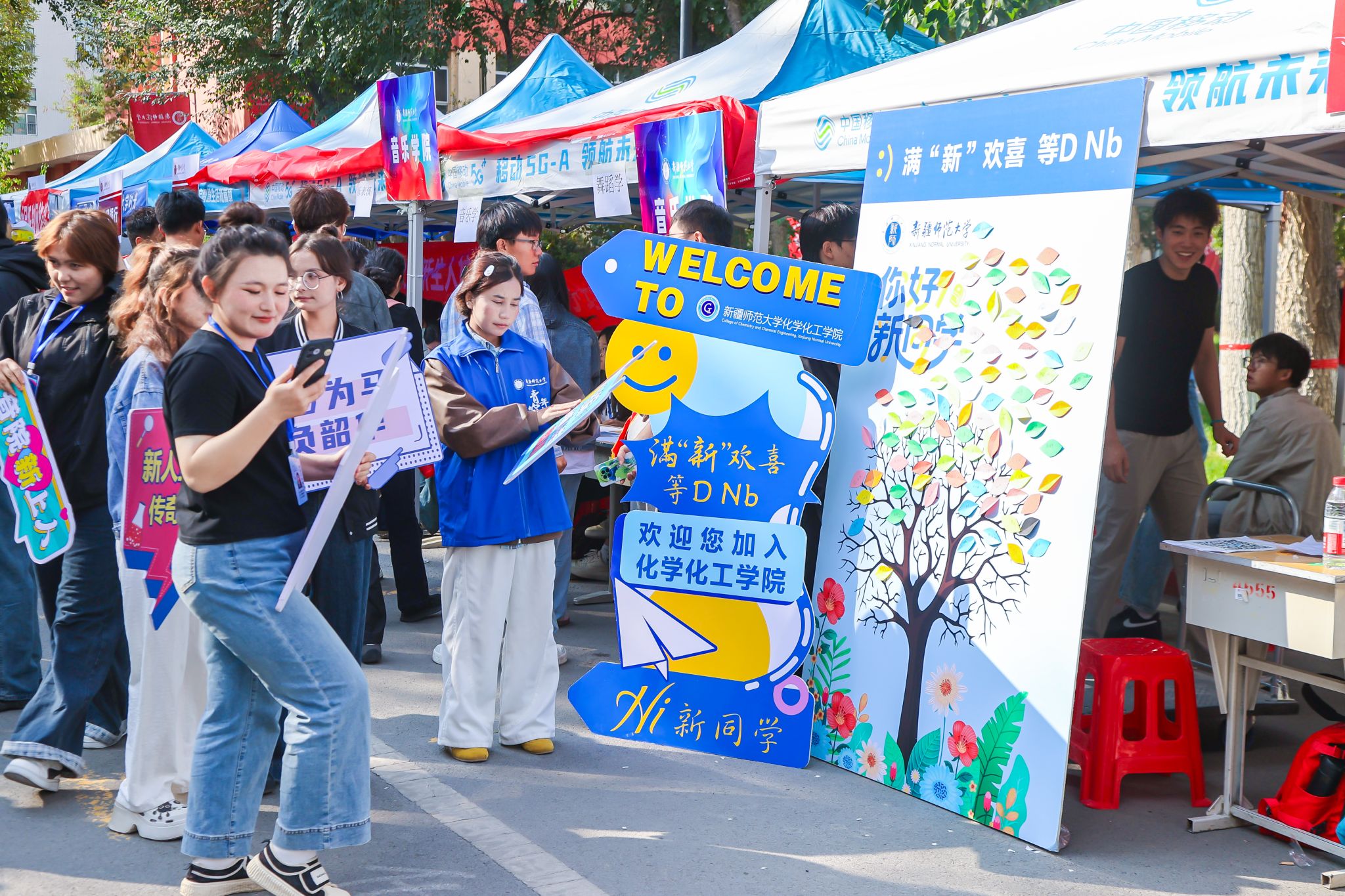 迎新现场,各学院别出心裁开展了一系列特色活动。商学院由“学长学姐”自主设计的文创礼物盲盒,成为最受关注的“入学礼”,每一份礼物都承载着学院对新生们美好的祝福;中国语言文学学院以“一线”为媒开展特色活动,一根丝线串联起互动与交流,悄然拉近了与学子的距离,既探寻他们来自五湖四海的地域故事,也聆听每个人独一无二的个性心声;数学科学学院精心准备了“数学之旅打卡”活动,为新生们定制了特色手持打卡相框,相框融入了数学公式和几何图形元素,新生们可手持相框在学院标志性场景前拍照留念,记录下成为数科院一员的第一个瞬间。