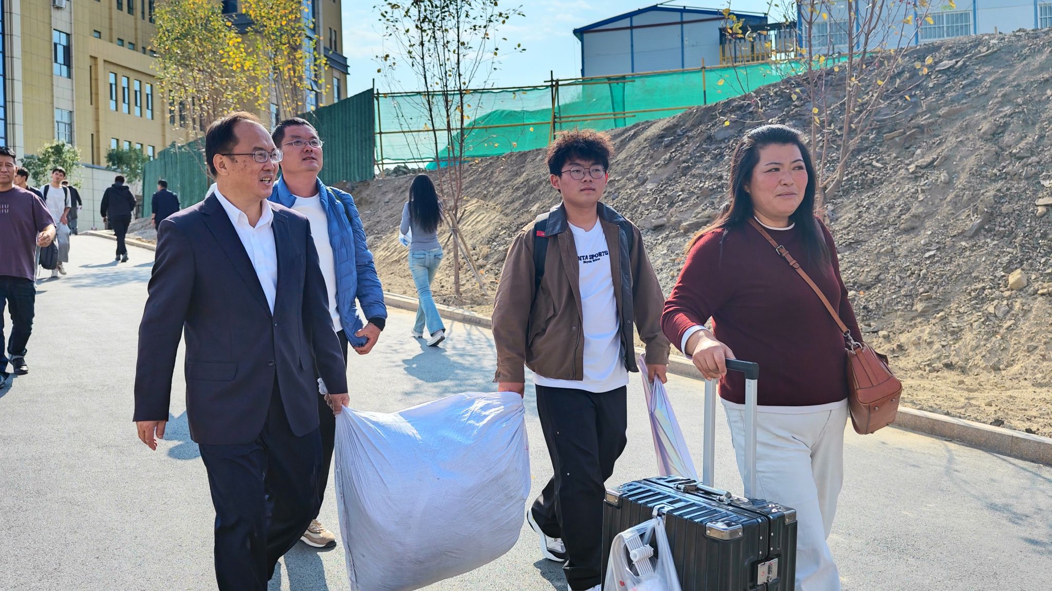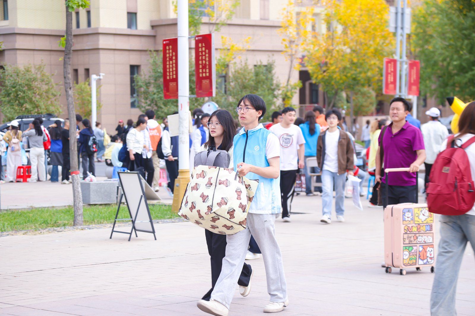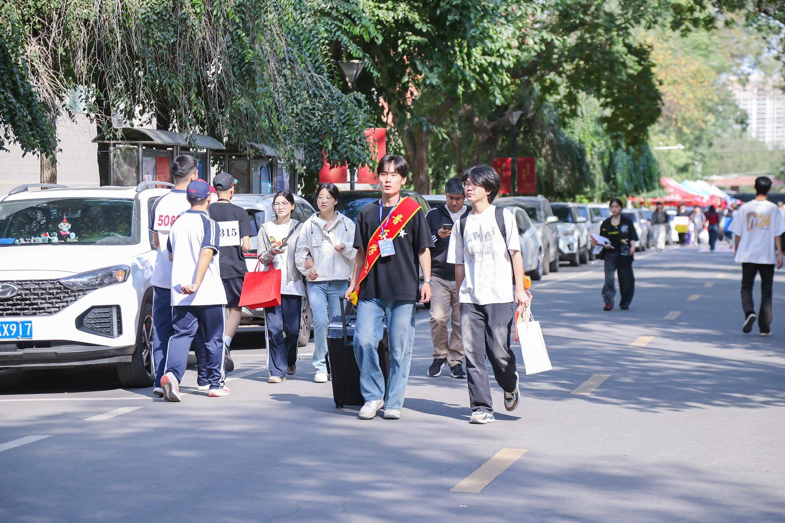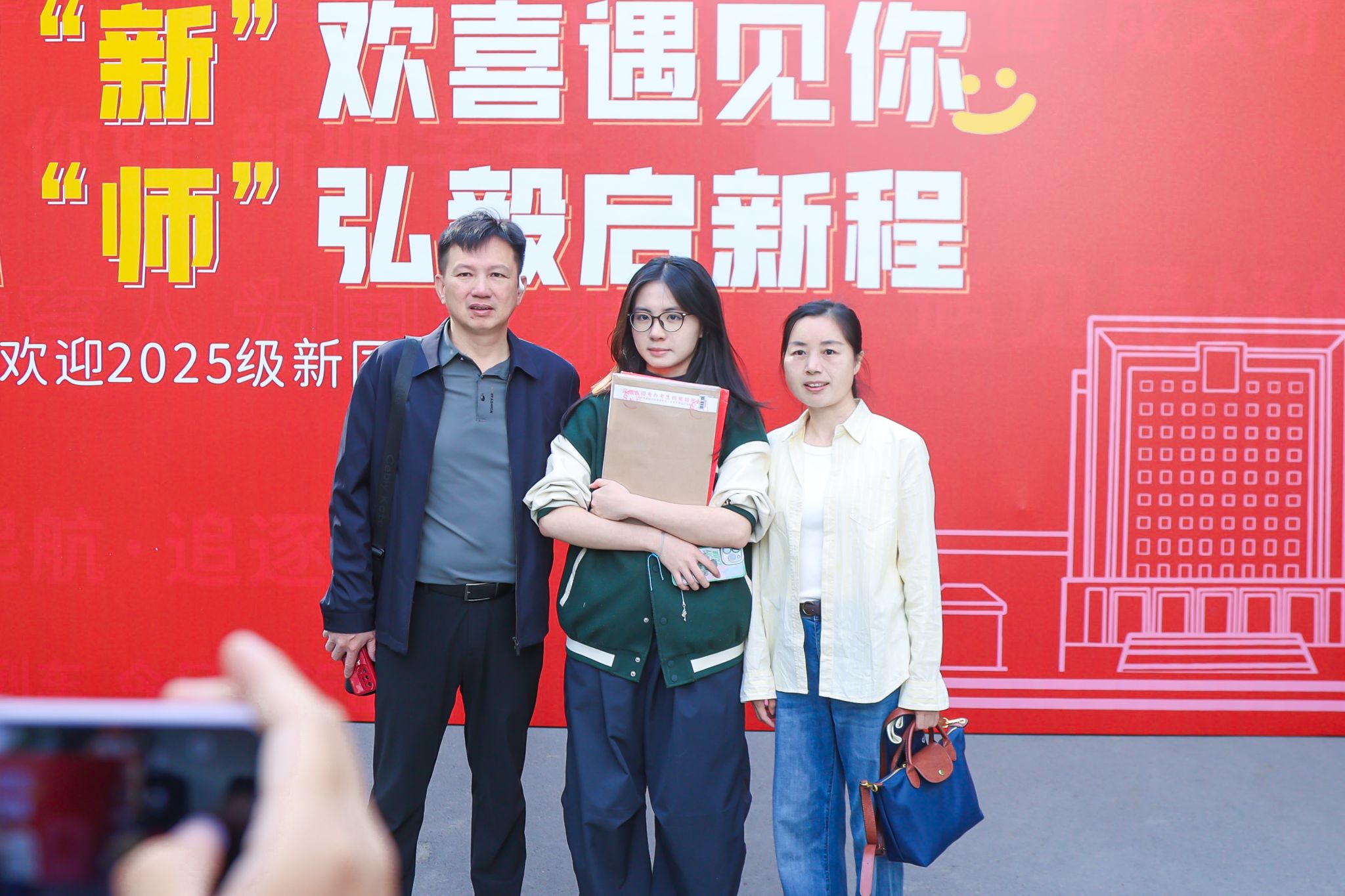 在丰富多彩的迎新活动之外,新生与家长们的真情实感,更是为这个充满喜悦的日子增添了温度。音乐学院音乐学25-1班的新生董一鸣表示:“刚进校园就感受到了浓浓的热情,志愿者们帮我搬行李、带路,让我觉得特别温暖。学校的氛围很好,老师学长学姐也都很好,让我对未来四年的大学生活充满期待,希望在这里能学到扎实的专业知识,结交一群志同道合的朋友。”董一鸣的家长也感慨道:“把孩子送到这里,我们很放心。学校的安排很周到,能让孩子快速适应新环境。希望孩子能在这所充满活力的大学里茁壮成长,实现自己的梦想。”