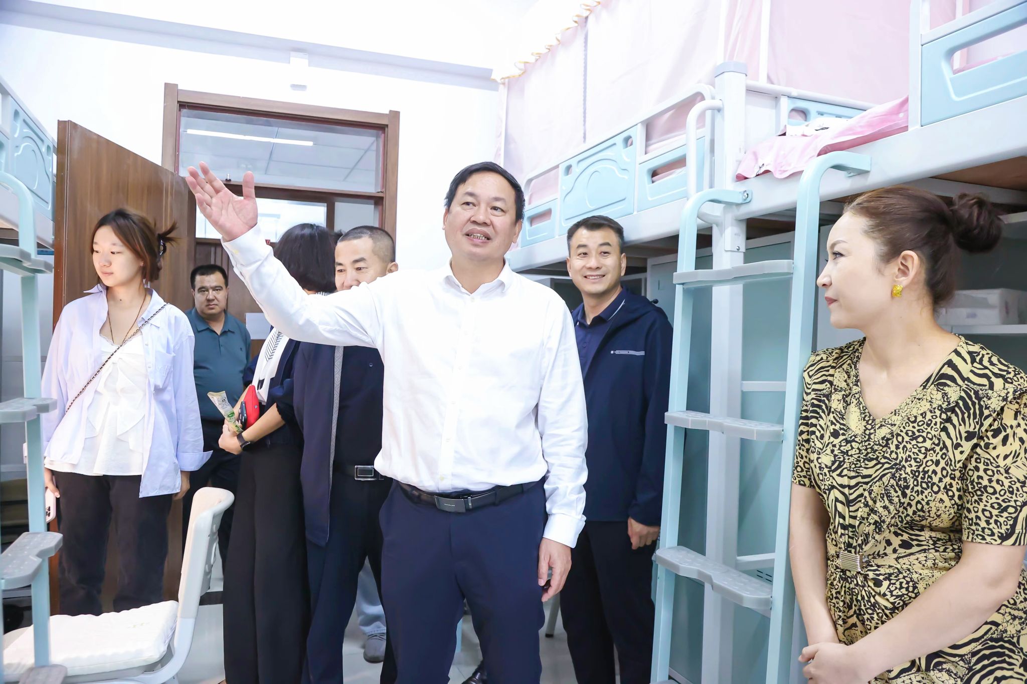 校党委书记蒋海军来到两校区迎新现场和宿舍查看并与新生交流