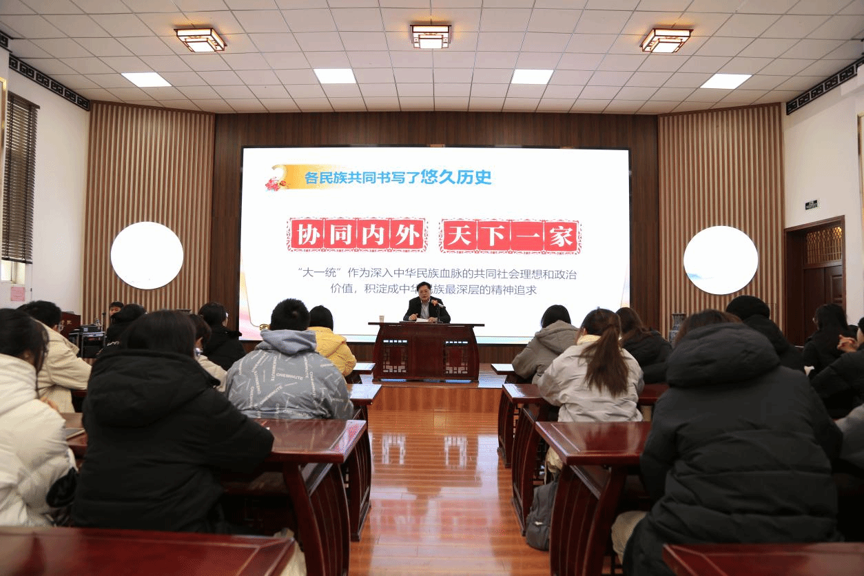 校领导们结合习近平总书记关于铸牢中华民族共同体意识的重要讲话精神与学校工作实际,从“团结之源头:深刻把握中华民族多元一体的基本国情”“变化之巨:全面认识民族团结进步事业的伟大成就”“长远之治:推动新时代党的民族工作高质量发展”三个部分,系统阐述了各民族的悠久历史、灿烂文化及民族团结进步事业的伟大成就。校领导们还结合自己工作和人生阅历及学校实际,讲述了近些年来新疆经济社会发展所取得的伟大成就,深刻阐释了铸牢中华民族共同体意识的概念及其内涵,积极引导广大同学争当民族团结进步事业的倡导者、践行者、维护者。
