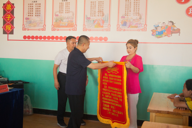 陈保云在会上指出,近年来,依靠yl6809永利官网的优质教育资源,亚喀艾日克乡中心小学教育发展水平显著提升,办学条件得到了极大改善,教育帮扶成果显著,成绩斐然。希望亚喀艾日克乡中心小学同学们要常怀感恩之心,饮水思源、见贤思齐,以自己的优异成绩报答师范大学的帮助和支持。会后,一名家中两个孩子先后考上区内初中班的学生家长,庄重地向师范大学送上锦旗,为师大党委和各级教师对孩子们的辛勤付出表示衷心感谢。