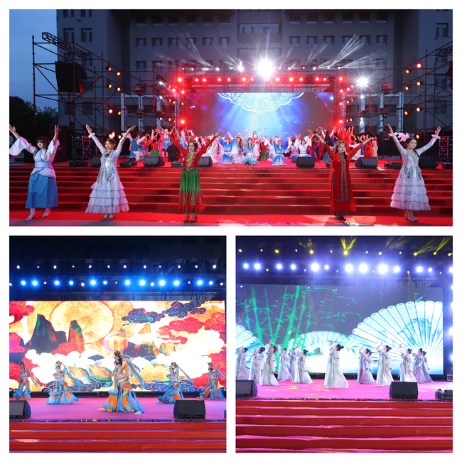 本次晚会以“‘预’时俱进、未来‘科’期”为主题,展现中华民族多元文化魅力,深入挖掘新疆特色文化,通过音舞盛会,让师生感受大美新疆的独特魅力,进一步引导广大师生铸牢中华民族共同体意识。演出形式多样、内涵丰富。其中有民族民间舞《丝路绽放》、中国古典舞蹈《丽人行》、预科教师诗朗诵《永承薪火再续华章》、师生同演共唱《是老师,是学生》等。节目《步步生花舞舞生辉》由师生同台身着传统服饰,用各具特色的走秀形式,共同演绎出了一幅绚丽多彩的画卷。歌曲《领航》《灯火里的中国》展现了预科教育学院合唱团的独特魅力和实力。
