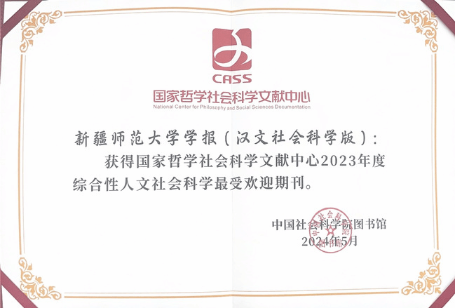 “国家哲学社会科学文献中心2023年度综合性人文社会科学最受欢迎期刊”证书