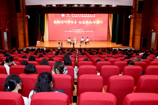 活动开始前,永利官网马克思主义学院学生通过朗诵和情景演绎的方式,再现了朱良才将军撰写的《朱德的扁担》的故事。