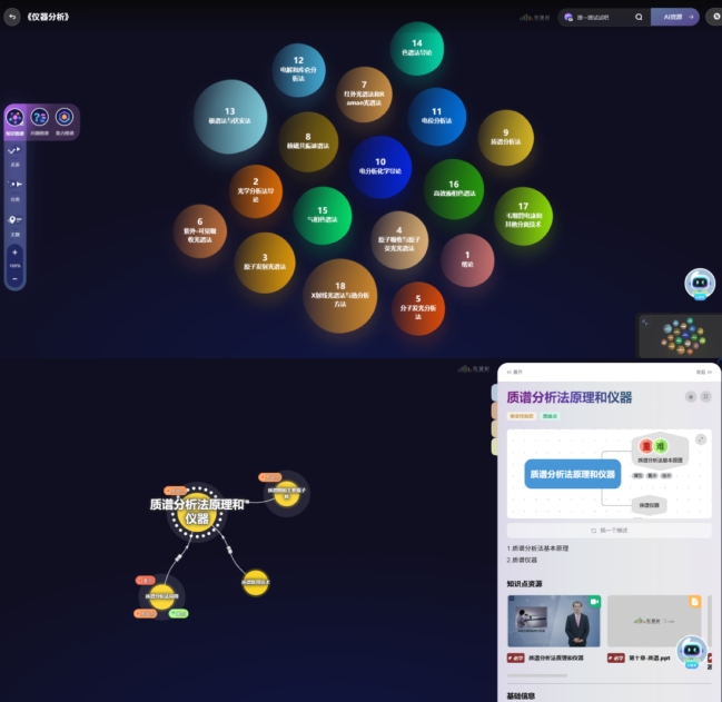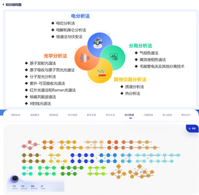 在技术层面,《仪器分析》课程知识图谱采用了前沿的大数据分析和大模型学习技术,对学生的学习行为和成绩进行深度分析,从而不断优化教学内容和教学方法。教学团队可通过定期在线调研和反馈机制,及时了解学生的学习需求,确保课程内容时刻保持最新,紧跟学科发展的步伐。