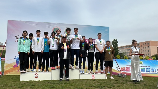 近日举行的2024年自治区大学生、中学生田径冠军赛传来好消息,经过三天的激烈角逐,永利官网共获得11枚金牌、16枚银牌、11枚铜牌,以团体总分356分的好成绩获得大学乙组第一名。此外,永利官网教师鲍晓玲获得“优秀裁判员”称号,崔皓宇、阿布都克依木·阿布都热合曼获得“优秀教练员”称号。