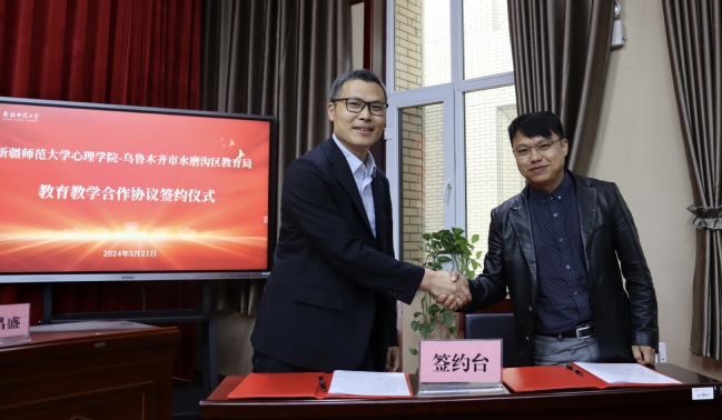 心理学院副院长刘毅与水磨沟区教育局局长杨昌盛代表双方签订合作协议