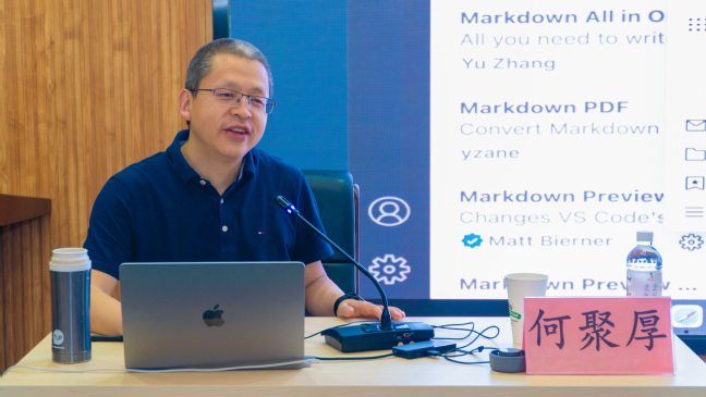 5月25日,何聚厚教授围绕教师数字素养发展和数字化教学转型探讨了实现教学数字化转型的理念、思路与途径,并以丰富的案例讲解了数字化教学转型下混合式教学设计的思路与流程。5月26日的AI赋能教学实训工作坊环节,何聚厚教授首先指导教师们进行了针对自己课程的混合式教学设计,并引导教师们通过与AI大语言模型的互动,一步步构建了自己的智能教学助手。