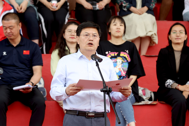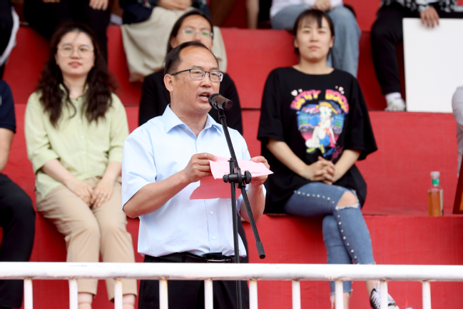 刘俊强调,习近平总书记始终高度重视体育运动的发展,将体育与国家发展、民族振兴紧密联系在一起。大学是为党和国家培养人才的地方,是青年人学习知识、增长才干、放飞梦想的地方,希望全体师生通过运动会认识自己、提升自己,增进彼此的交流交往交融,热爱运动,健康工作和学习,共同谱写中华民族伟大复兴的中国梦。