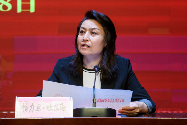 校党委常委、副校长帕力旦•吐尔逊宣读《关于成立yl6809永利官网铸牢中华民族共同体意识教育罗意名师工作室的决定》