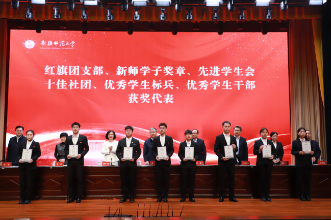 新师学子奖章获奖代表、美术学院刘晴晴,“三强班级”获奖代表、计算机科学技术学院贾广潮,第九届“田家炳杯”全国师范院校师范生教学技能竞赛获奖代表、物理与电子工程学院何国铭,第十三届全国大学生电子商务“创新、创意及创业”挑战赛获奖代表、教育科学学院王雯璐,第九届“互联网+”大学生创新创业大赛获奖代表、化学化工学院王诗茵在会上发言。