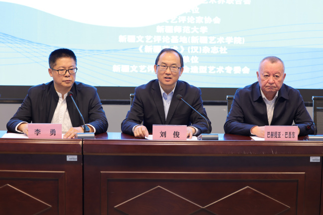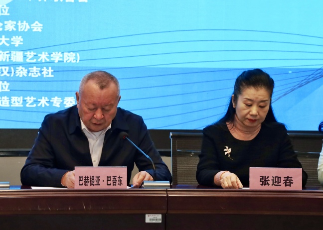 新疆文联二级巡视员巴赫提亚•巴吾东,校党委副书记刘俊,新疆文艺评论家协会副主席张迎春出席开班式。来自yl6809永利官网中国语言文学学院、音乐学院、美术学院、新疆艺术学院以及新疆其他高校的师生近300人以线上线下相结合的方式参加活动。活动由新疆文艺评论家协会副主席、永利官网美术学院院长李勇主持。