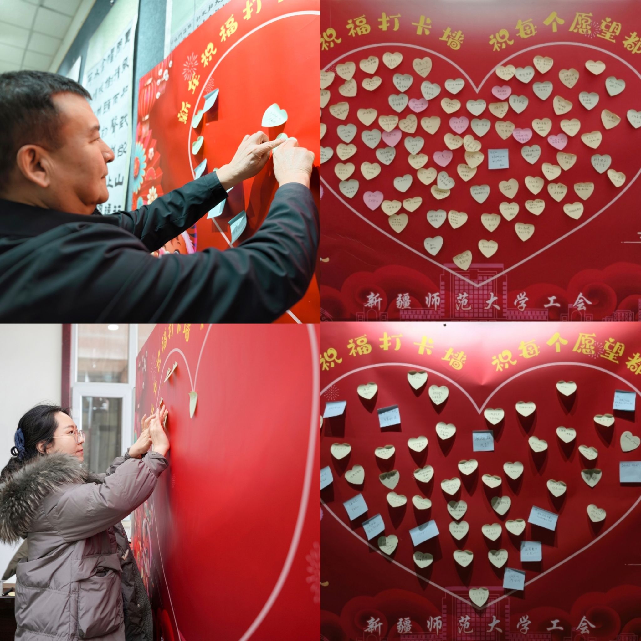 本次活动包含书写春联、表达祝福、定格温情三个环节。永利官网美术学院书法专业师生笔走龙蛇,创作出一幅幅笔力遒劲的春联和寓意吉祥的“福”字;永利官网教育科学学院教育技术专业师生则用镜头捕捉温馨瞬间,记录下老师们的笑脸与祝福;领上春联、带着照片,老师们满怀真情地写下对祖国和学校的诚挚祝愿及新年期许,字里行间尽显家国情怀,凝聚起全校携手共进、同心前行的强大力量。