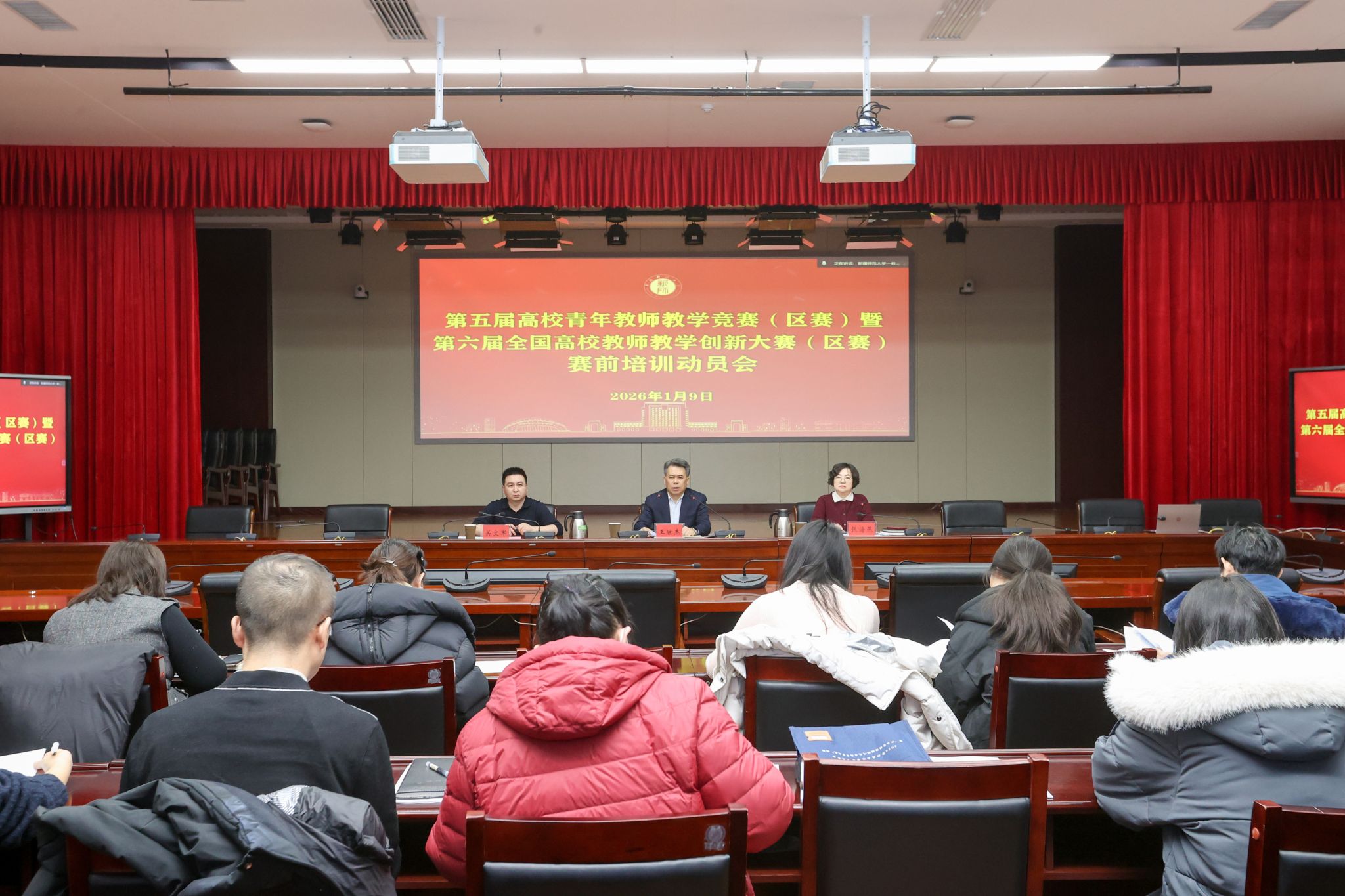 为进一步提升永利官网教师教学能力,凝聚备赛共识,提升参赛竞争力,助力永利官网教师在区赛中取得优异成绩,1月9日,永利官网在温泉校区行政楼220会议室举办第五届高校青年教师教学竞赛(区赛)暨第六届全国高校教师教学创新大赛(区赛)赛前培训动员会。校党委常委、副校长王世杰参加会议并讲话,学校党委教师工作部副部长、教务处处长关文军,往届教创赛、青教赛获奖教师代表,以及两项赛事校赛全体参赛教师及团队成员参加会议。会议由学校党委教师工作部部长张海燕主持。