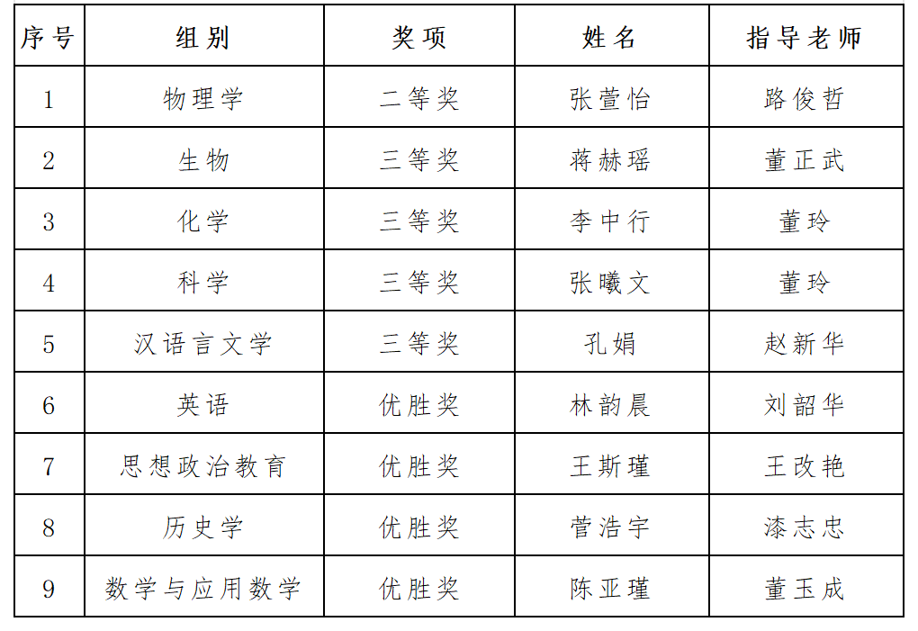 获奖信息