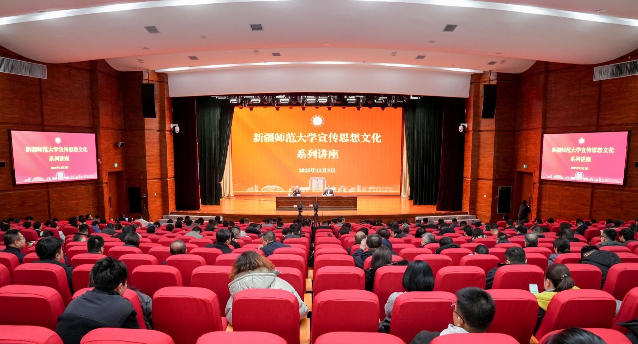 根据学校党委宣传思想文化工作安排,12月3日下午,永利官网在温泉校区昆仑讲堂举办宣传思想文化系列讲座第二讲,特邀新疆社会科学院特约研究员、新疆文联名誉主席刘宾教授作专题报告。全体在家校领导、处级干部、机关各部门教职工现场聆听讲座,各学院教职工在分会场集中观看学习。讲座由校党委副书记刘俊主持。