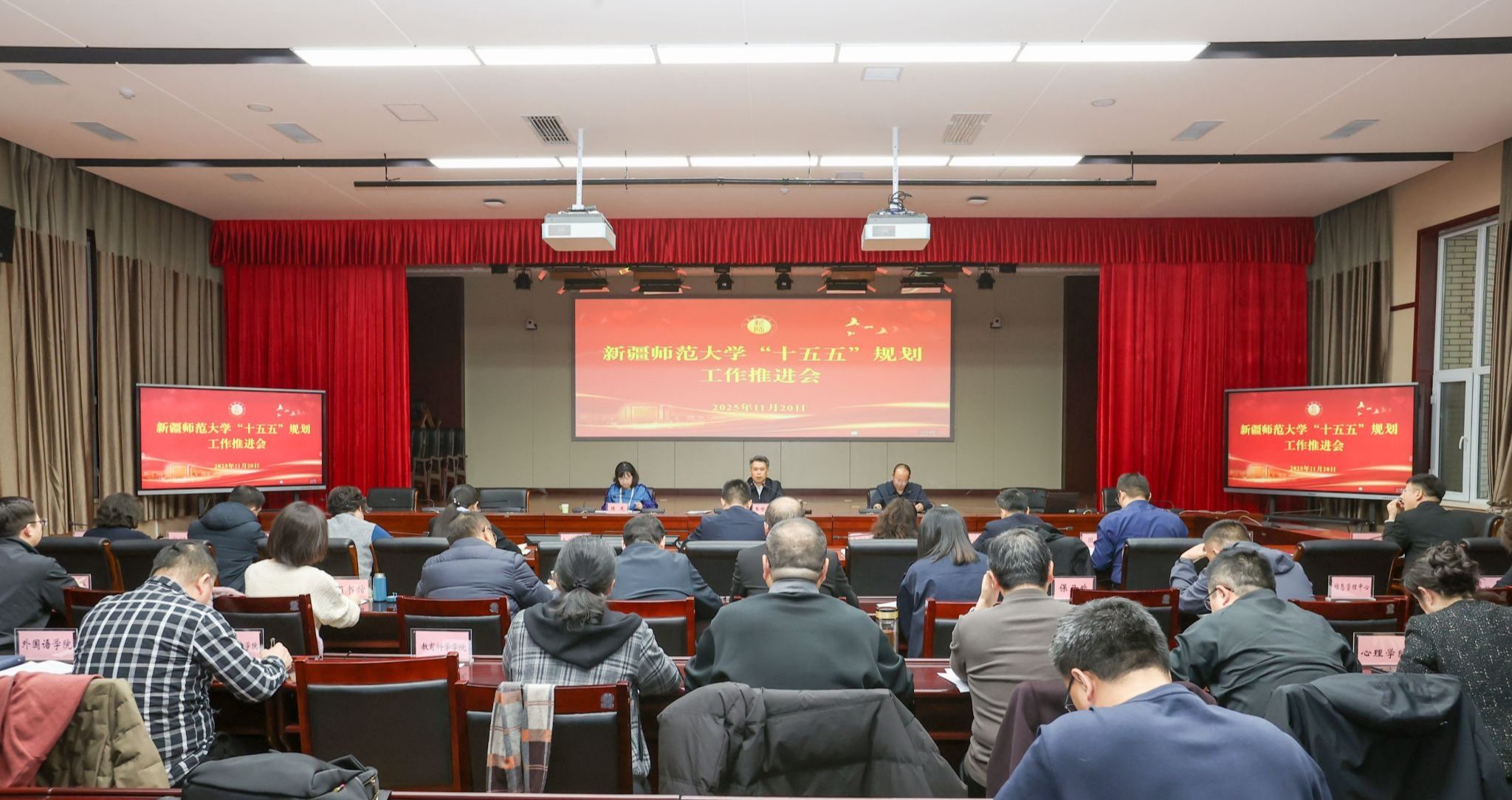 11月20日下午,“十五五”事业发展规划编制工作推进会在温泉校区行政楼220会议室举行。校党委常委、副校长王世杰出席会议并讲话,各职能部门、学院、附属中学负责人参加会议。