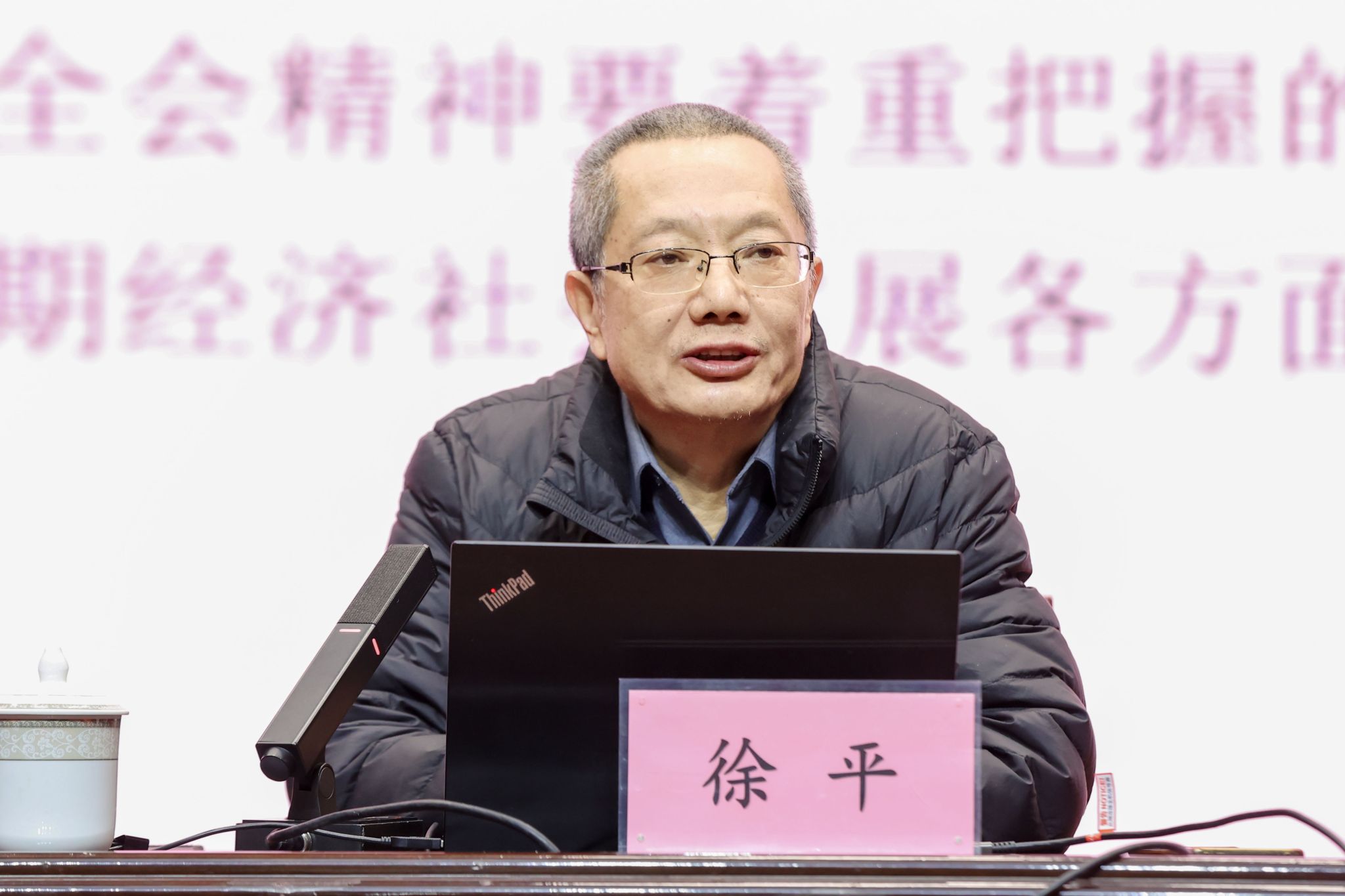 为深入学习贯彻习近平新时代中国特色社会主义思想和党的二十届四中全会精神,切实把思想和行动统一到党中央决策部署上来,11月18日上午,永利官网宣传思想文化系列讲座在温泉校区昆仑讲堂开讲,首场讲座邀请中共中央党校二级教授、博士生导师、督学专家徐平,为永利官网干部师生作《续写中国奇迹新篇章,奋力开创中国式现代化新局面——党的二十届四中全会精神解读》专题报告。全体在家校领导、处级干部、机关各部门教职工现场聆听讲座,各学院教职工通过线上观看视频方式参加学习。讲座由校党委副书记刘俊主持。