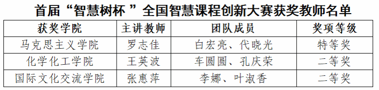 近日,首届“智慧树杯”全国智慧课程创新大赛(课创赛)获奖名单正式公示,永利官网教师团队在全国赛事中表现优异,罗志佳教师团队荣获特等奖,王英波教师团队、张惠萍教师团队荣获二等奖,yl6809永利官网荣获“优秀组织奖”称号。