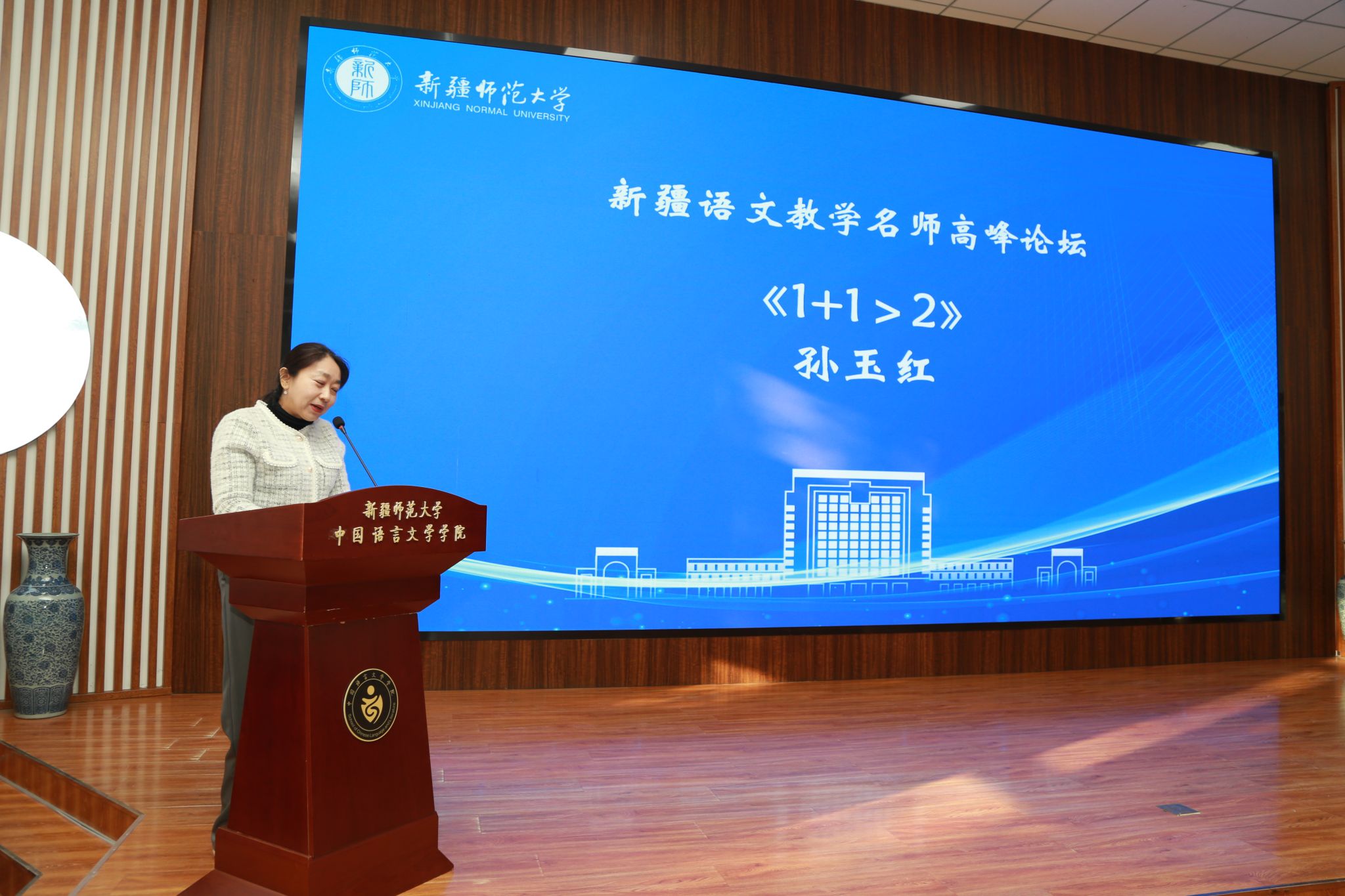孙继红在致辞中表示,本次论坛的召开正值自治区成立70周年,论坛的成功举办将为提升教师综合素养、促进文化自信自强、提升文学教育质量起到重要作用。作为新疆教育科研的“排头兵”,新疆教育科学研究院重点要在推进名师工作室建设方面提供有力的政策与专业支持。希望大家借此次论坛,分享智慧、转化经验,共同推动语文教学成为文化传承与素养培育的重要载体。