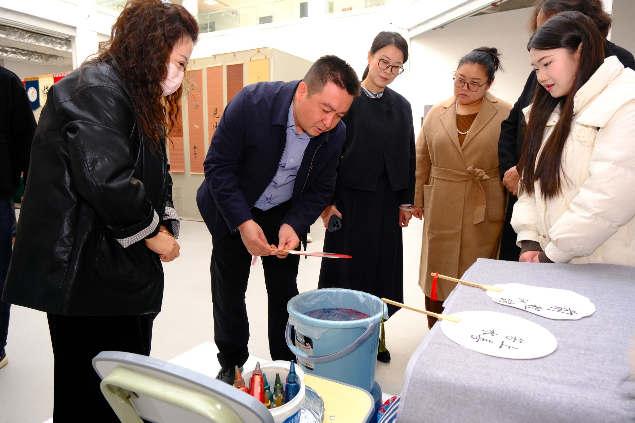 开幕式后,参会人员参观了展示活动。25个工作坊以“一校一坊”形式集中呈现师生共同创作的艺术成果:年画工坊色彩明快、金丝彩韵景泰蓝精致绚丽、龟兹壁画工坊古韵厚重、剪纸非遗工坊灵动鲜活。不少工坊还设置现场互动环节,邀请现场参观学生参与制作,让美育实践从“观赏”走向“参与”。学校团委通过“青春新师大”微信平台发布第二课堂选课信息,分4个时段组织学生参与,每场150人,同时安排志愿者协助维护现场秩序,确保活动兼具教育性与体验感。