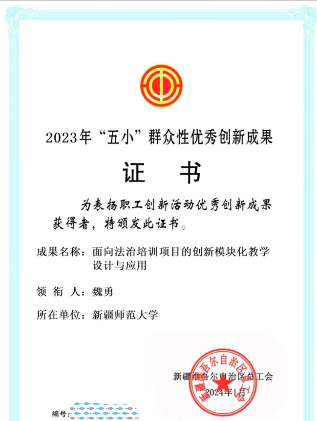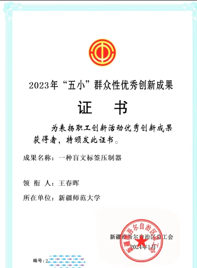 小革新、小发明、小创造、小设计、小建议“五小”群众性优秀创新成果的申报,是由学校工会积极组织,广泛动员各二级工会教师参与申报,经自治区总工会审核,永利官网共有四个项目荣获自治区“五小”群众性优秀创新成果奖。