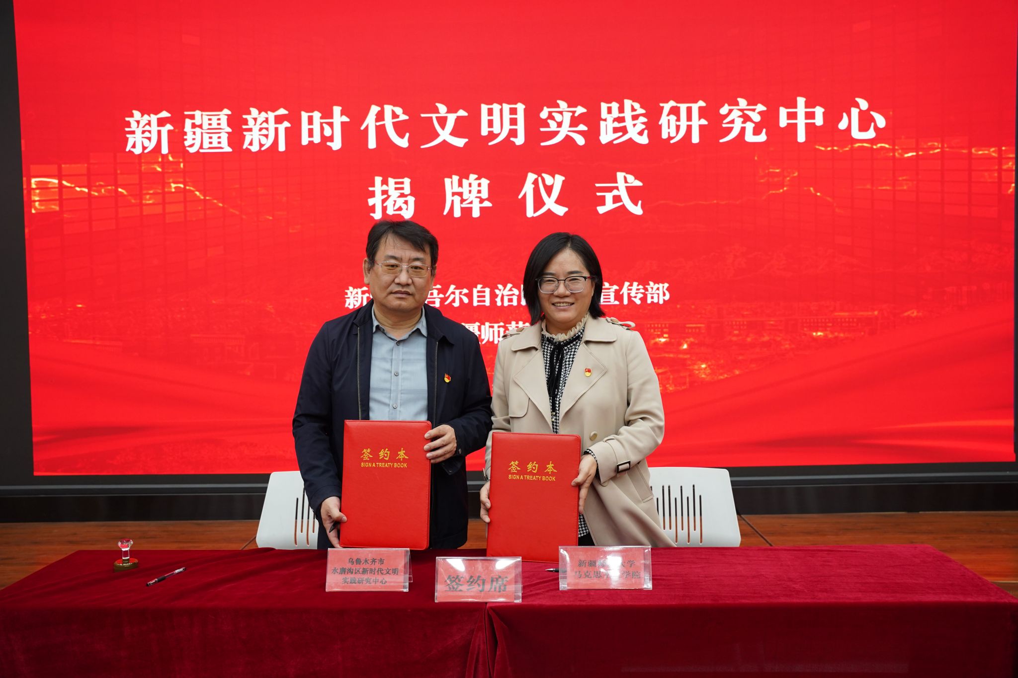 仪式上,永利官网马克思主义学院与乌鲁木齐市水磨沟区新时代文明实践研究中心现场签订共建协议,标志着研究中心在实践创新和成果转化方面迈出了重要一步。