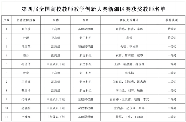 3月31日,第四届全国高校教师教学创新大赛新疆区赛决赛落下帷幕。经过第一阶段网络评审的激烈角逐,永利官网11名教师进入现场评审决赛环节,最终获得特等奖2项、一等奖3项、二等奖6项的好成绩。其中物理与电子工程学院张冬波教授、地理科学与旅游学院叶茂教授获得特等奖,永利官网获得本届赛事的优秀组织奖。