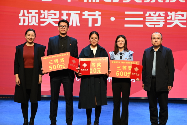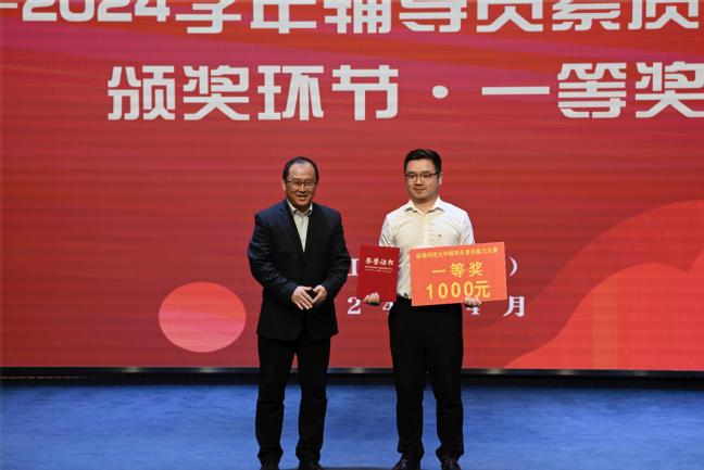 化学化工学院党委书记张鑫、历史与社会学院党委书记白丽艳为获奖辅导员颁发二等奖
