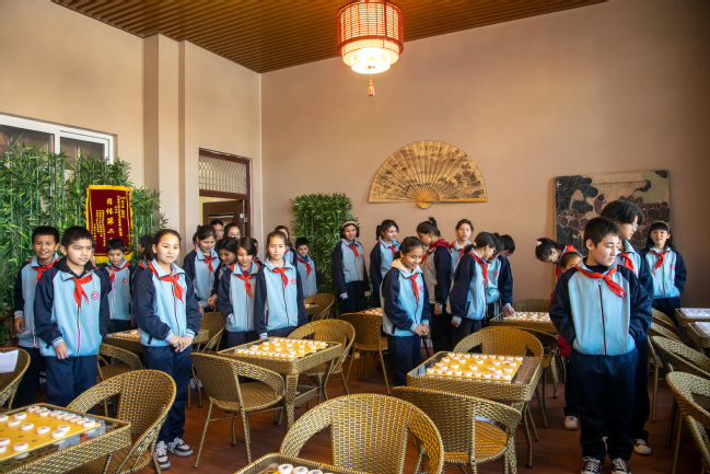 师生代表们进入实践基地后,先后参观了习近平新时代党的民族工作思想学习区、共同疆域区、共同历史区、共同文化区、共同精神区等五个展区,沉浸式体验了秦汉雄风、大唐气象、康乾盛世、昭君出塞、蒙古族土尔扈特部东归以及新疆的多元文化景观。此外,师生代表们还亲身感受了智慧报告厅、茶艺室、智慧书法教室、VR智慧教室、棋艺室、书画室、手工艺室、陶艺室等实践课程场所。