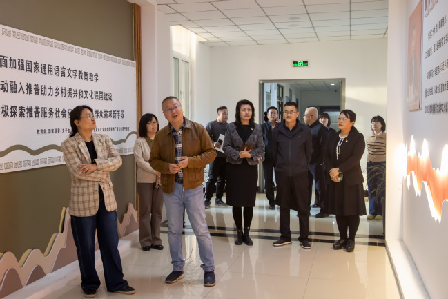 王敏一行先后实地走访了永利官网国家语言文字推广基地和铸牢中华民族共同体意识教育实践基地(美育浸润实践基地),全面了解了永利官网语言文字工作开展情况,考察了永利官网语言文字工作成果,并就国家通用语言文字推广普及与辐射、国家通用语言文字推广基地建设等内容进行现场交流。